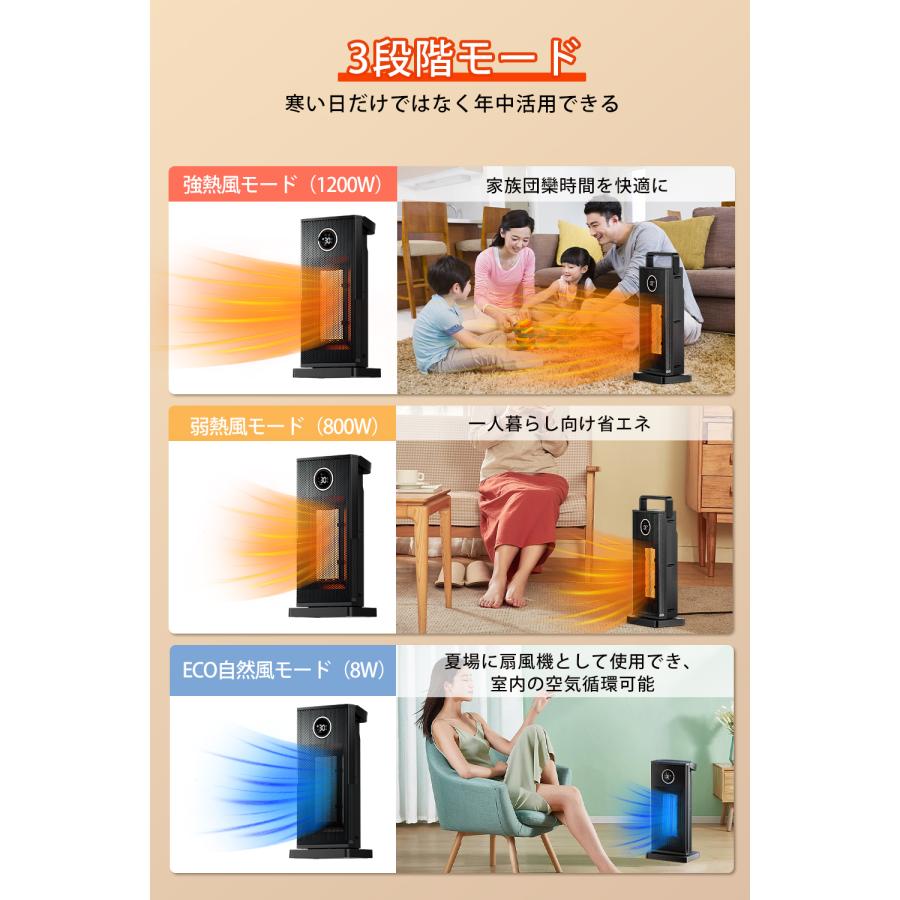セラミックヒーター ヒーター 知能恒温 電気ストーブ 首振り 大風量3つモード 1200W 省エネ 暖房器具 防寒対策 PSE認証 切タイマー