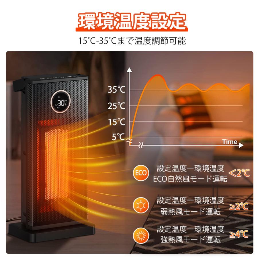 【環境温度設定&タイマー機能】15℃-35℃まで温度調節可能、また、1-12Hまで設定でき、外出時や就寝時の切り忘れを防止できます。