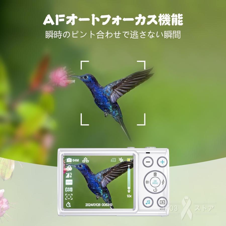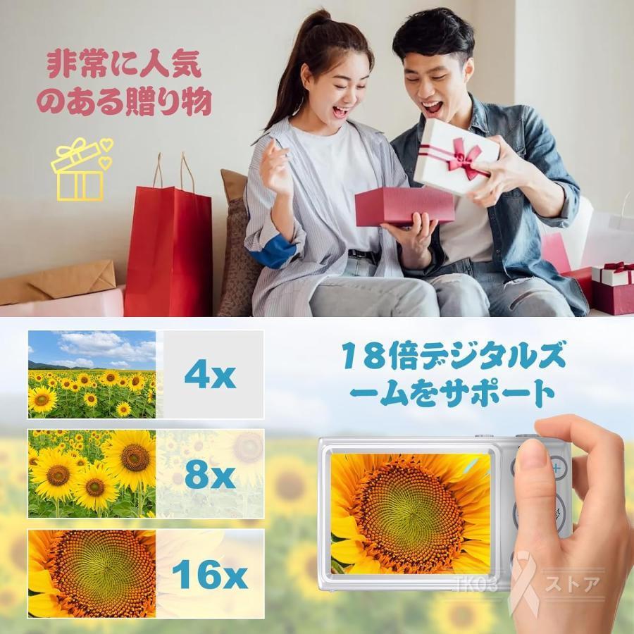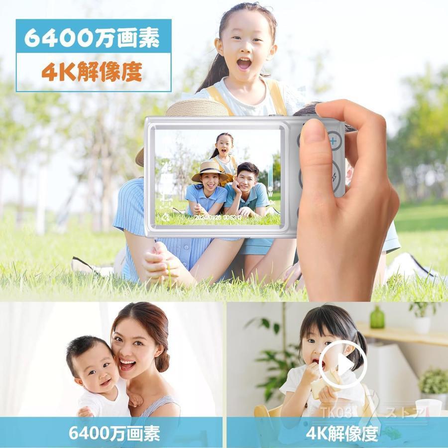 デジタルカメラ デジカメ 6400万画素 4K 動画撮影 2.8インチ 18倍ズーム 高画質 AF機能 自撮り スマホ転送 手振れ補正 美顔 フィルター 初心者