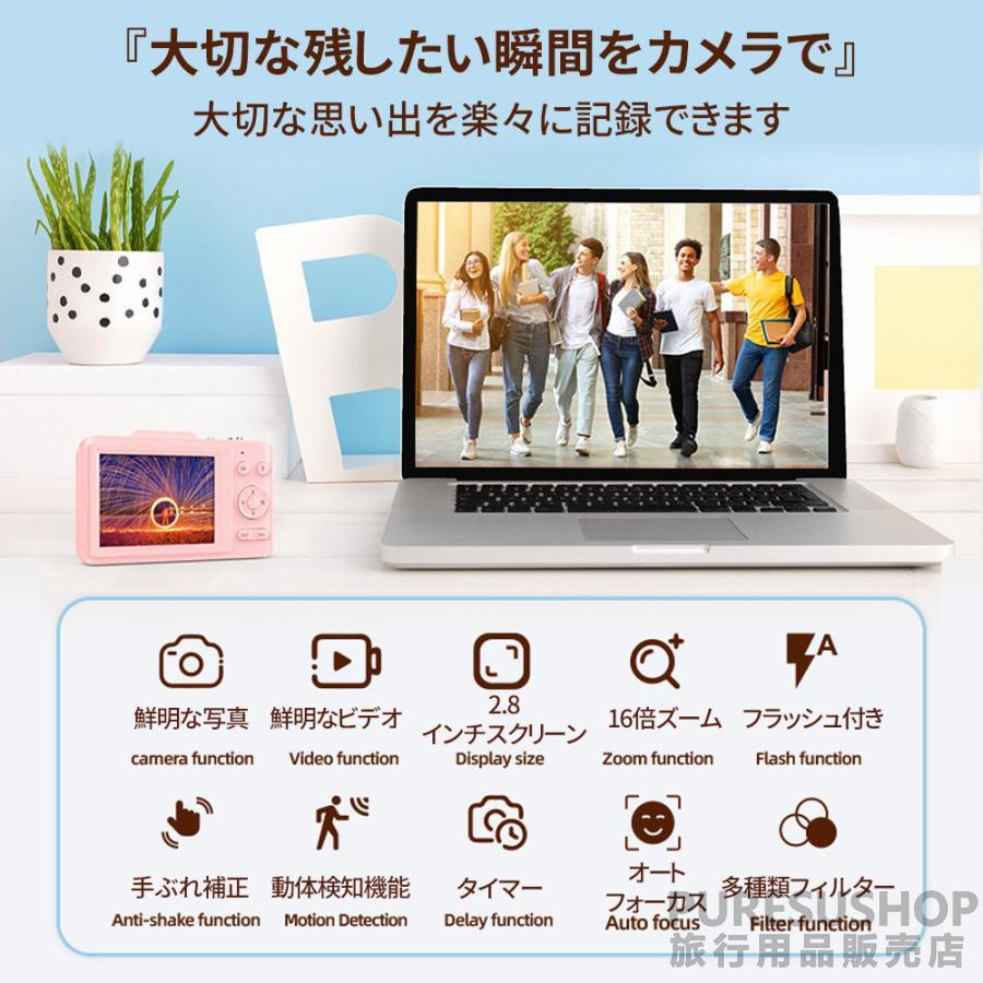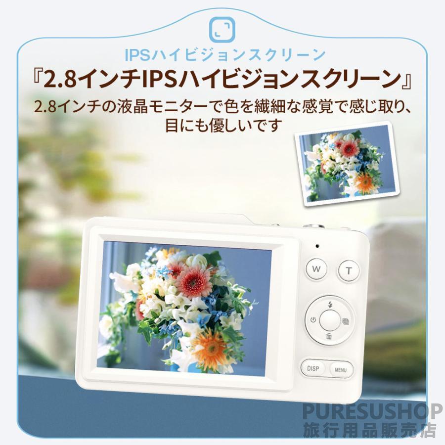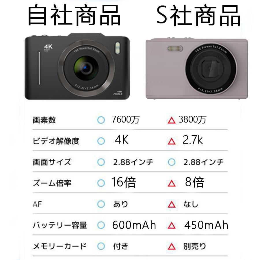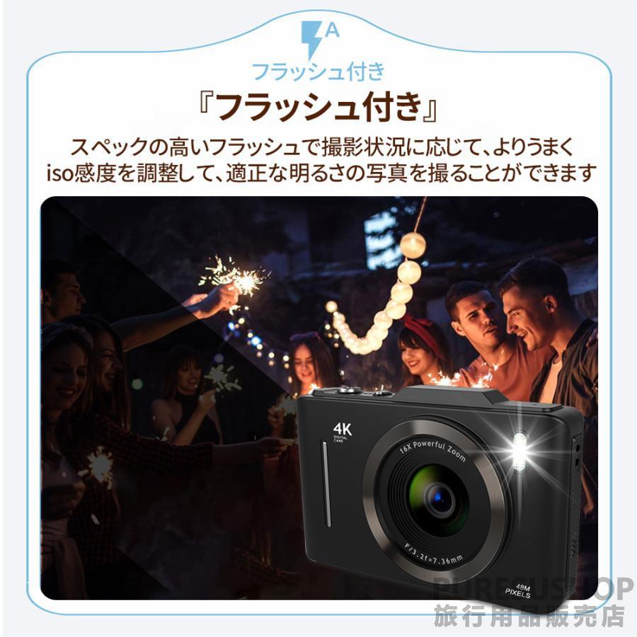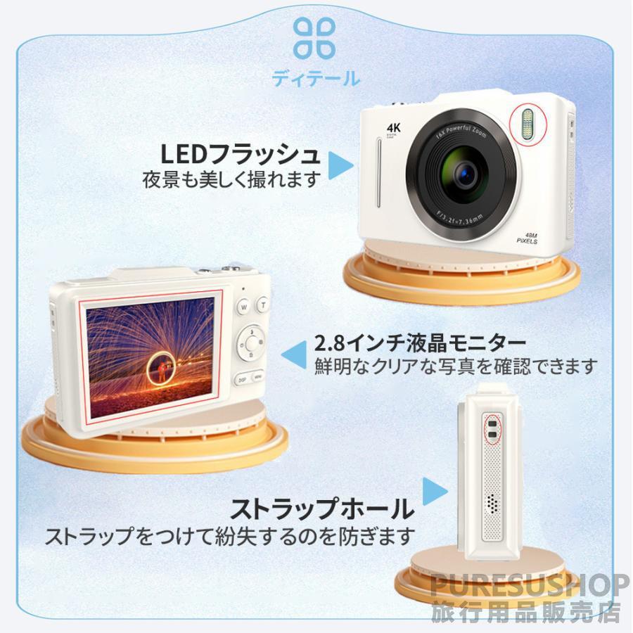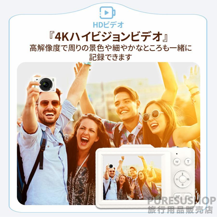 デジタルカメラ デジカメ 7600万画素 4K 自動美顔 2.8インチ 16倍ズーム 高画質 AF機能 動体検知機能 自撮り スマホ転送 手振れ補正 軽量 修学旅行 初心者 2024