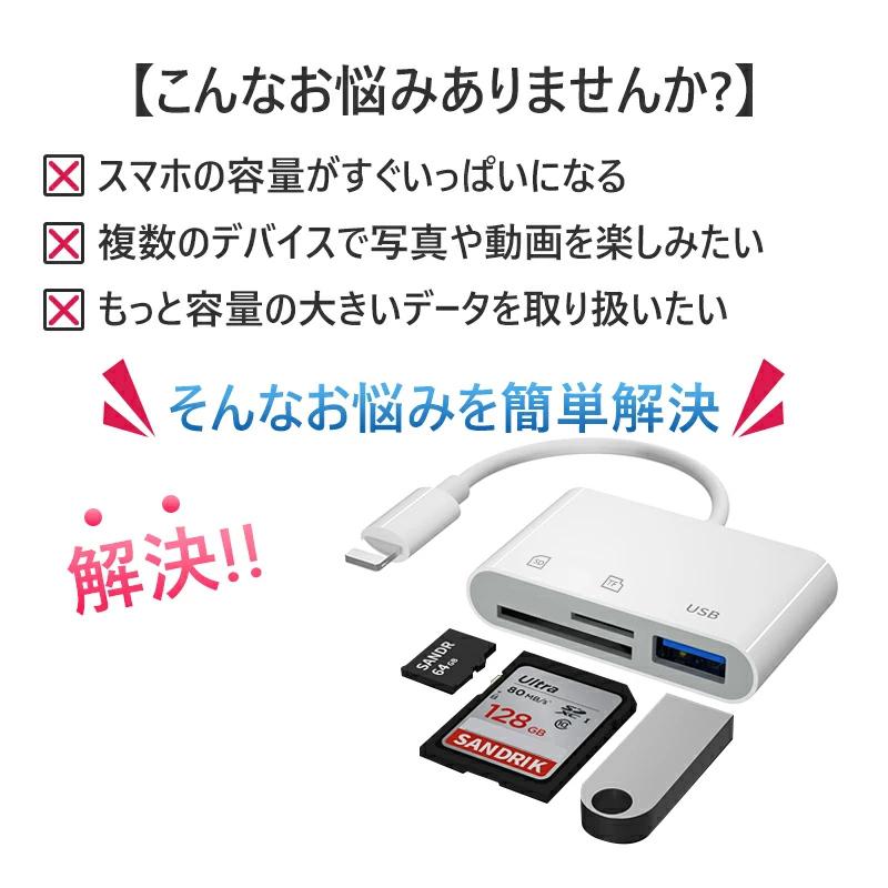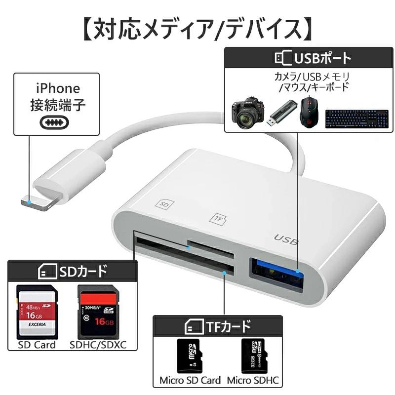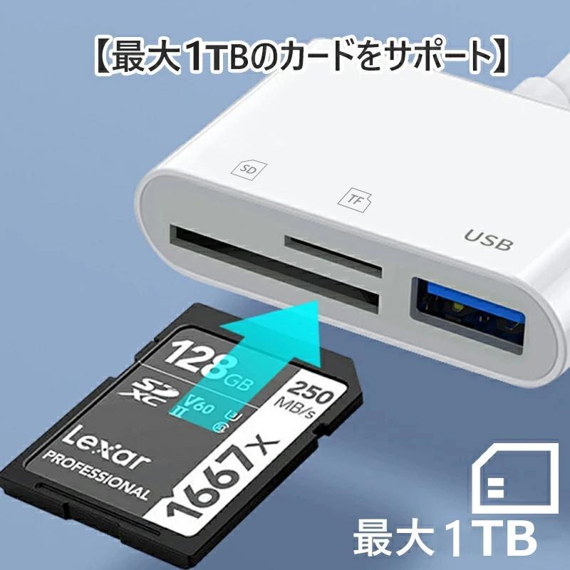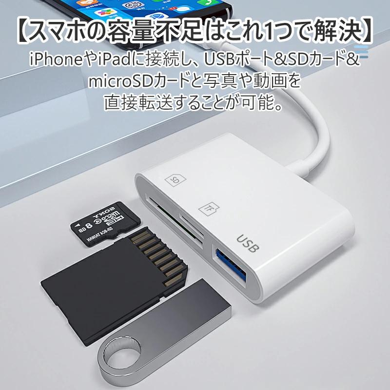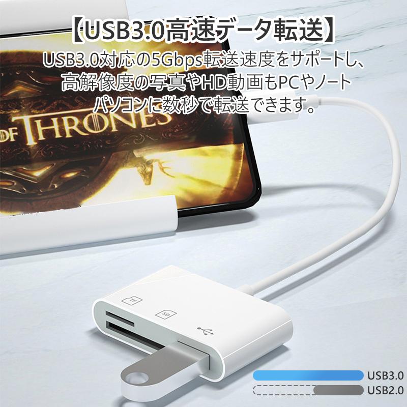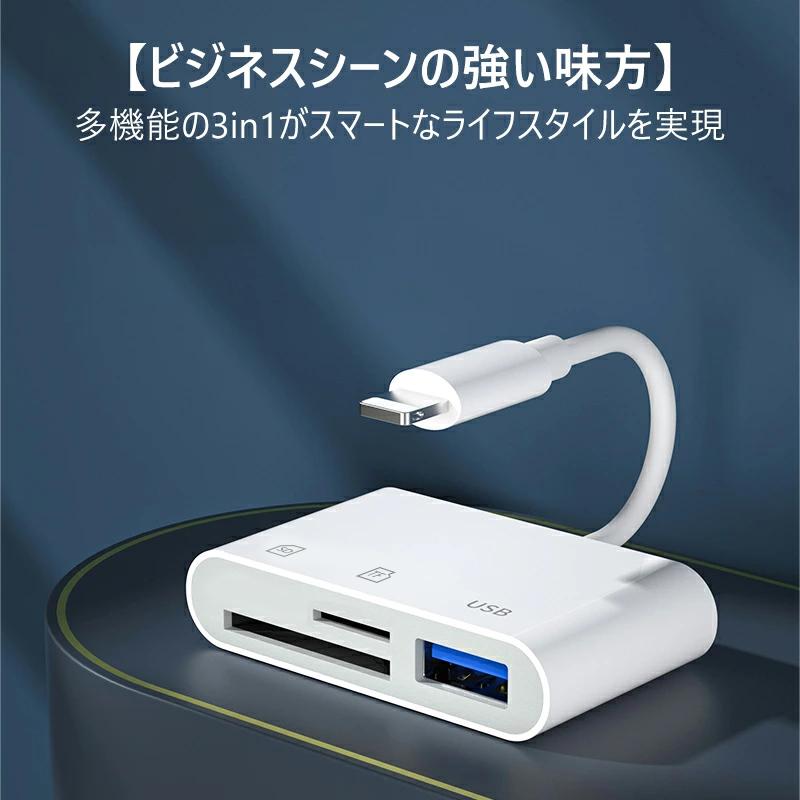 カードリーダー SDカード iPhone iPad USBメモリ 3in1 Lightning type-c カードリーダー USB3.0 OTG機能 カメラリーダー 最大512GB メモリーカード
