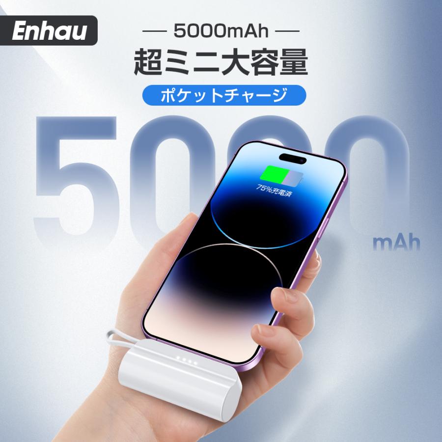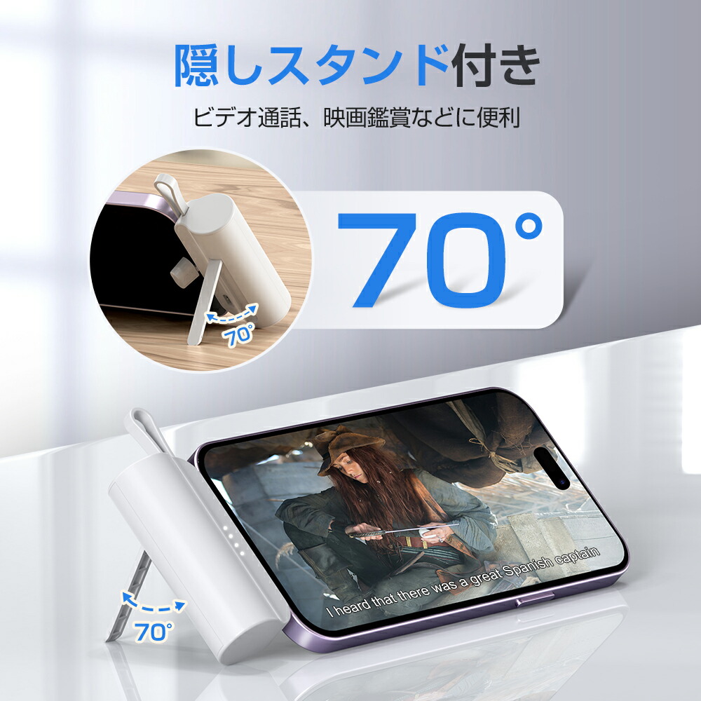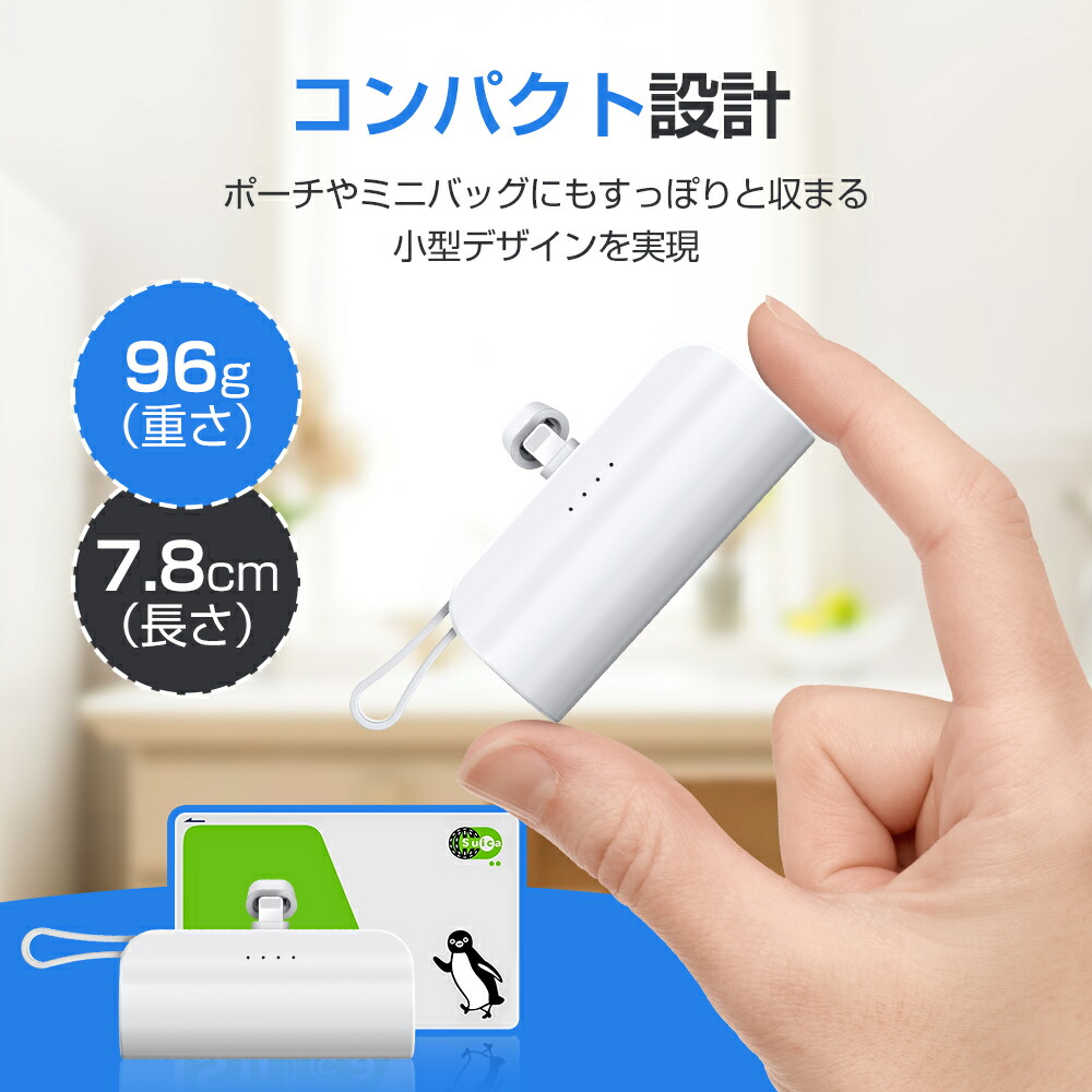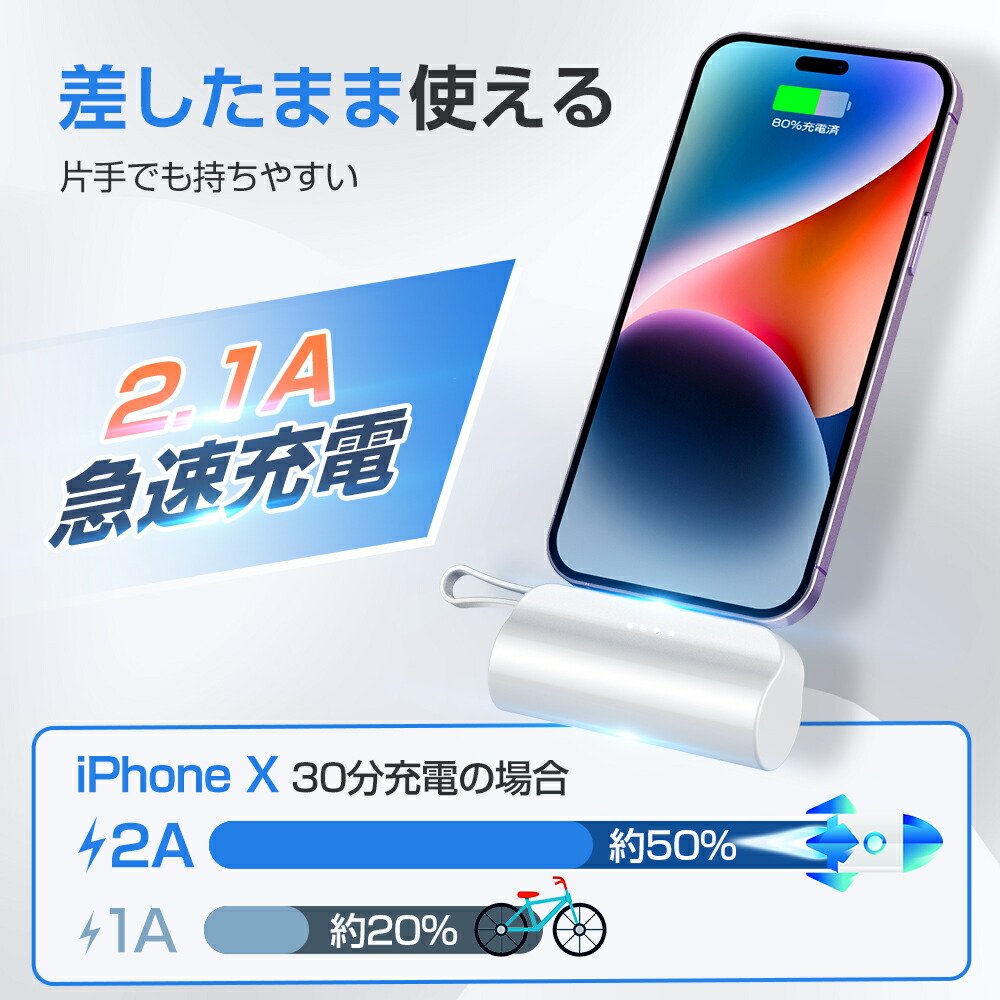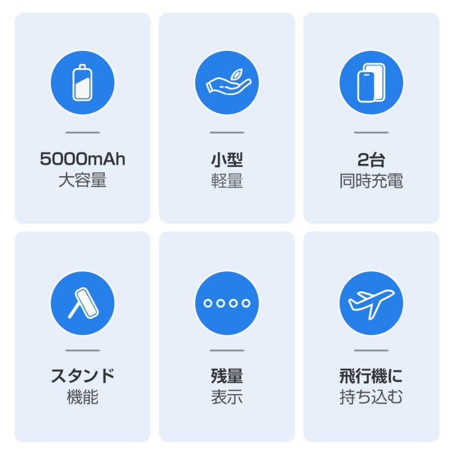 モバイルバッテリー 大容量 5000mAh ケーブル内蔵 iphone用 充電器 超軽量 小型 2台同時充電 スマホ充電器 Type-C Lightning ケーブル内蔵 携帯充電器 防災用品