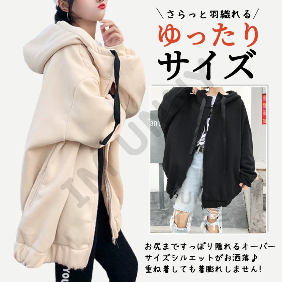 パーカー レディース 裏起毛 韓国 秋 冬 春 暖かい 黒 スウェット おしゃれ ロング丈 ビッグシルエット 通学 おしゃれ トップス 体型カバー 通勤 大人 20代 30代