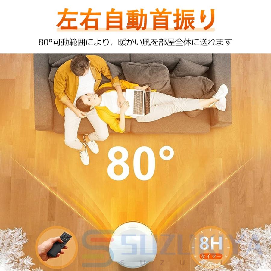80度左右自動首振り機能が付いているので、本体を移動させなくても広範囲をしっかり暖めてくれます。