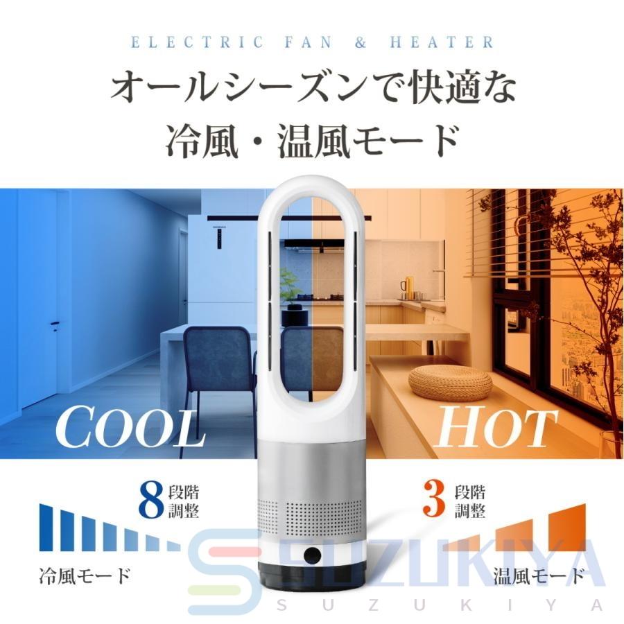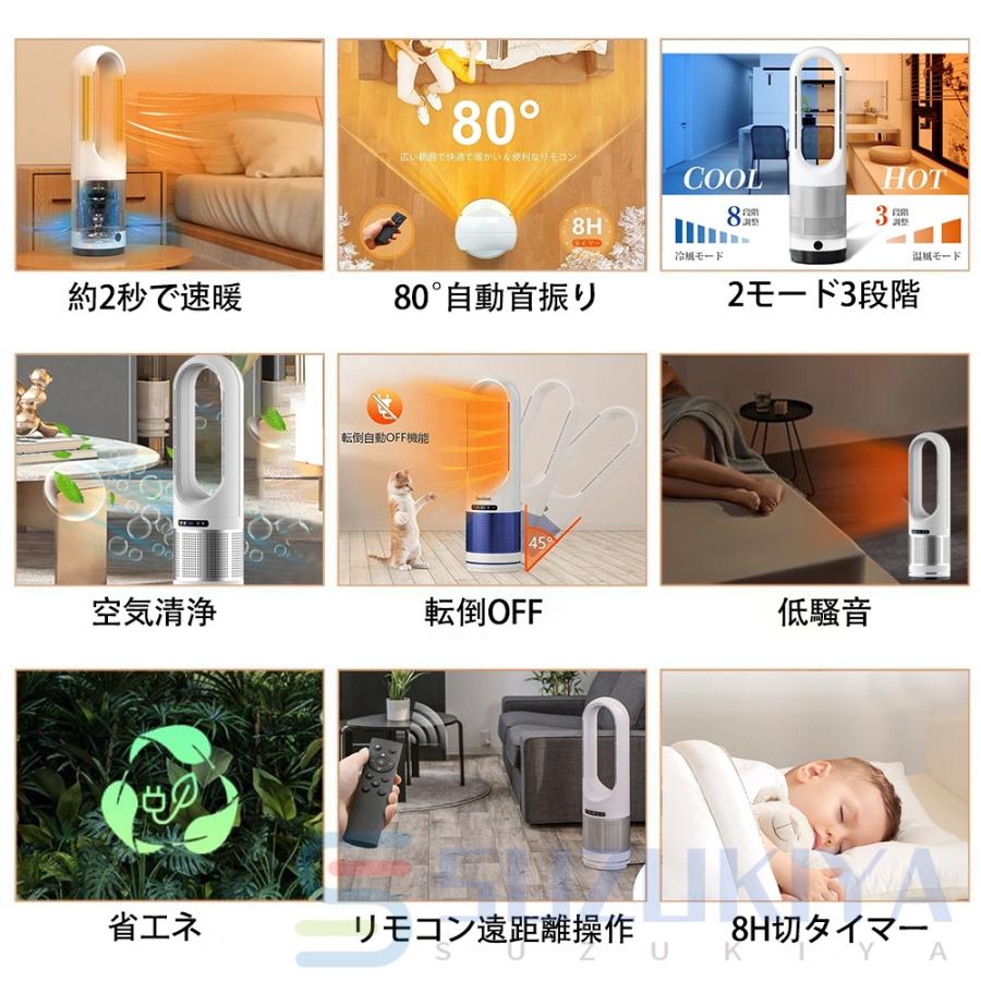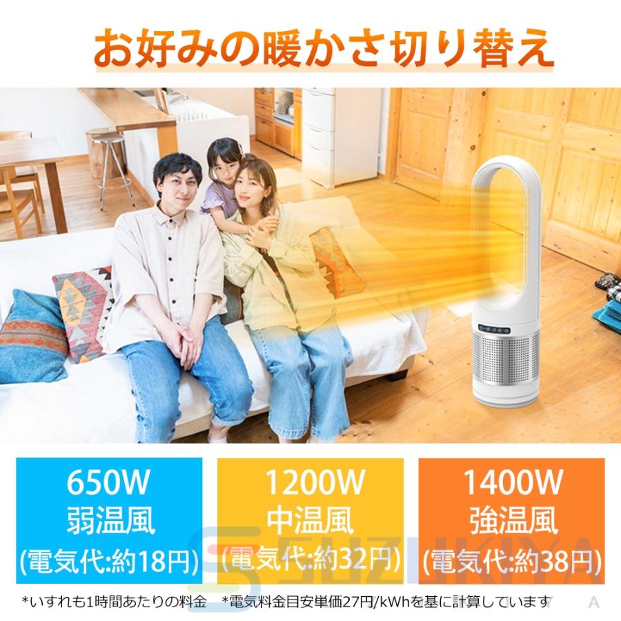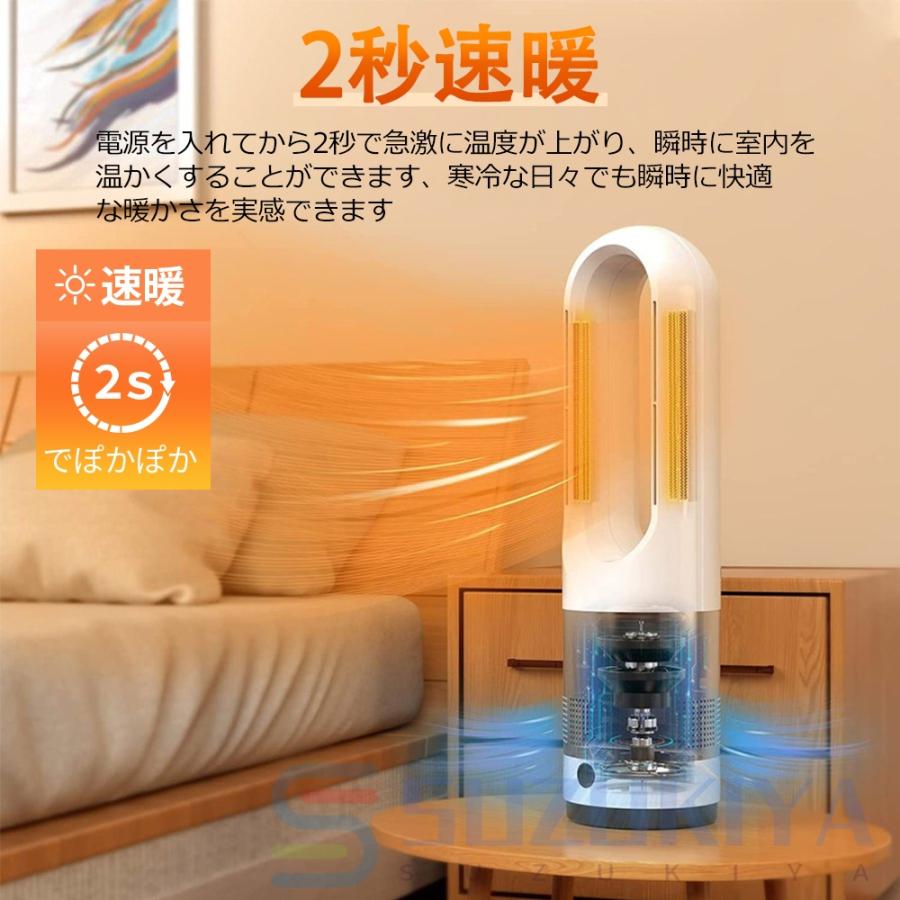セラミックヒーター 速暖 省エネ 羽なし 足元 冷暖兼用 電気ファンヒーター 温冷風扇 タワーファン 電気ストーブ 扇風機 静音リモコン付き ファンヒーター