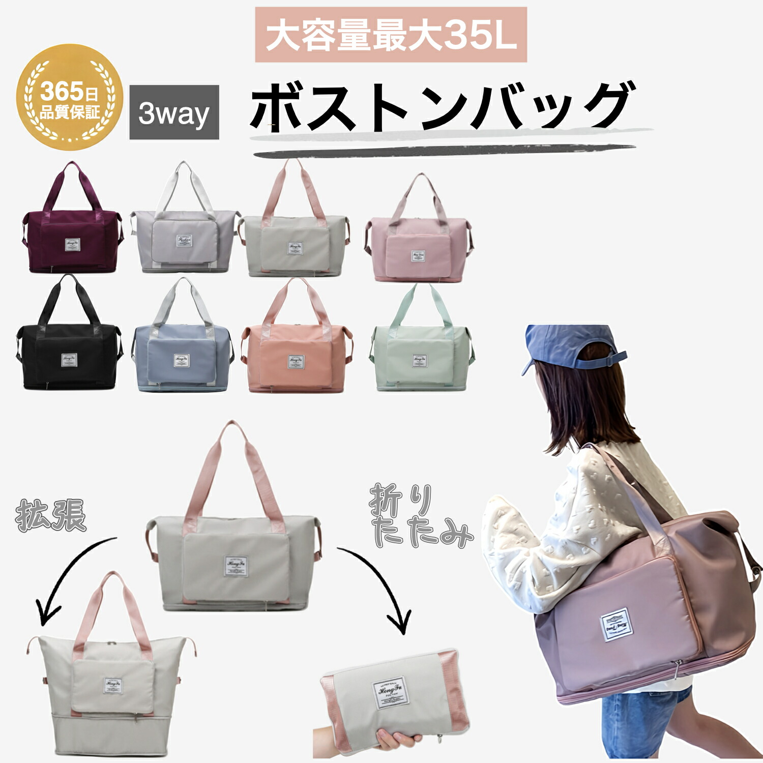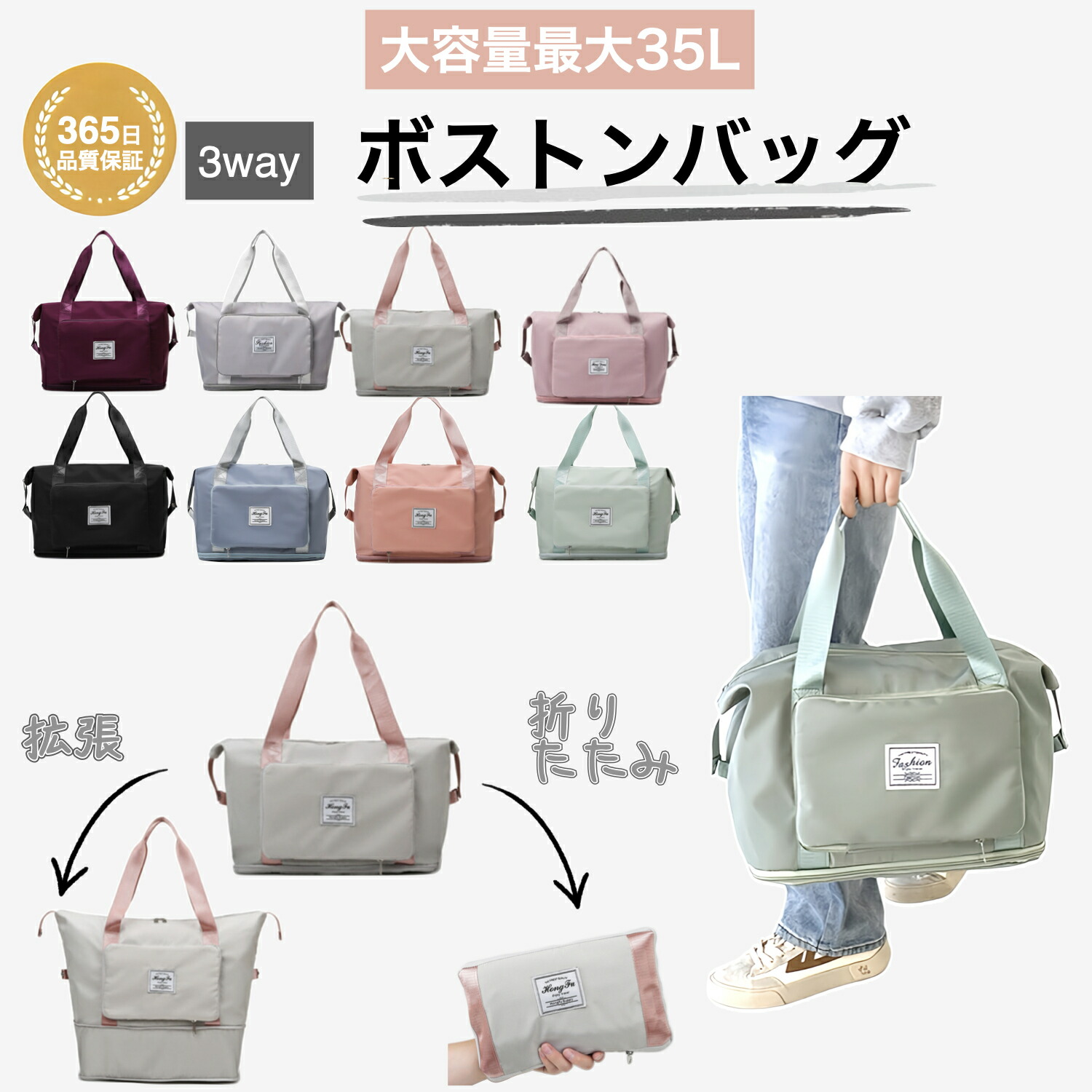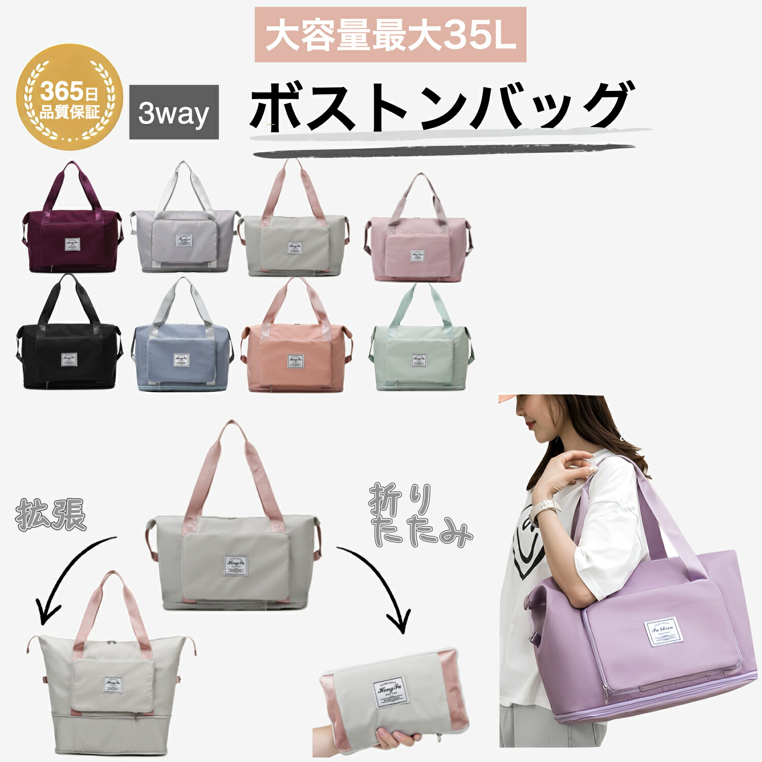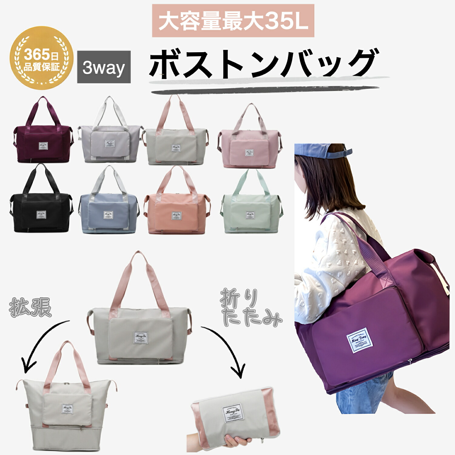 折りたたみ ボストンバッグ 軽量 レディース 大容量 旅行バッグ 1泊 2泊 旅行 女子 ジムバック ショルダー 旅行カバン キャリー 修学旅行 肩掛け