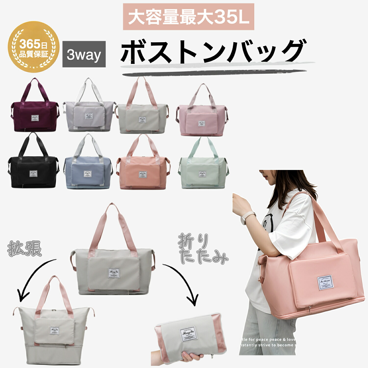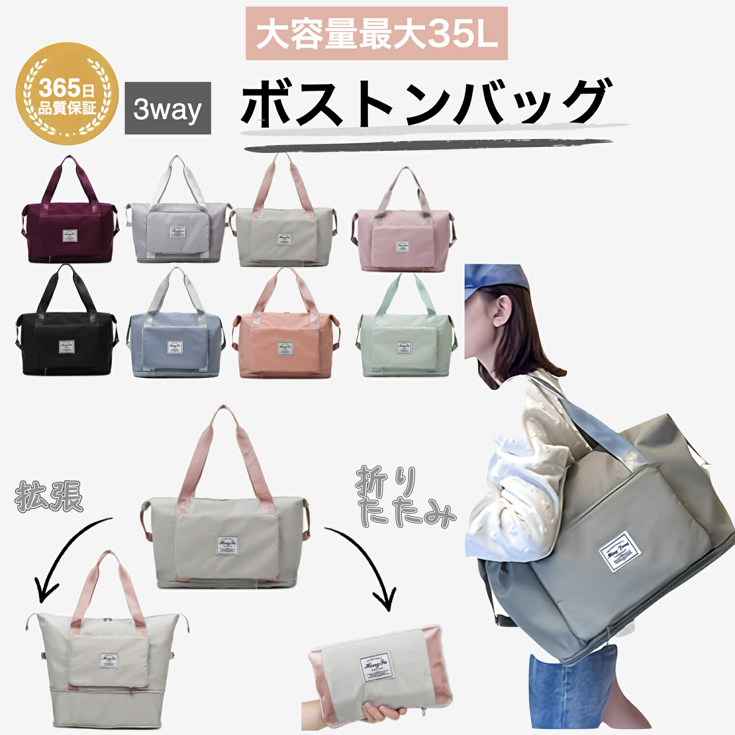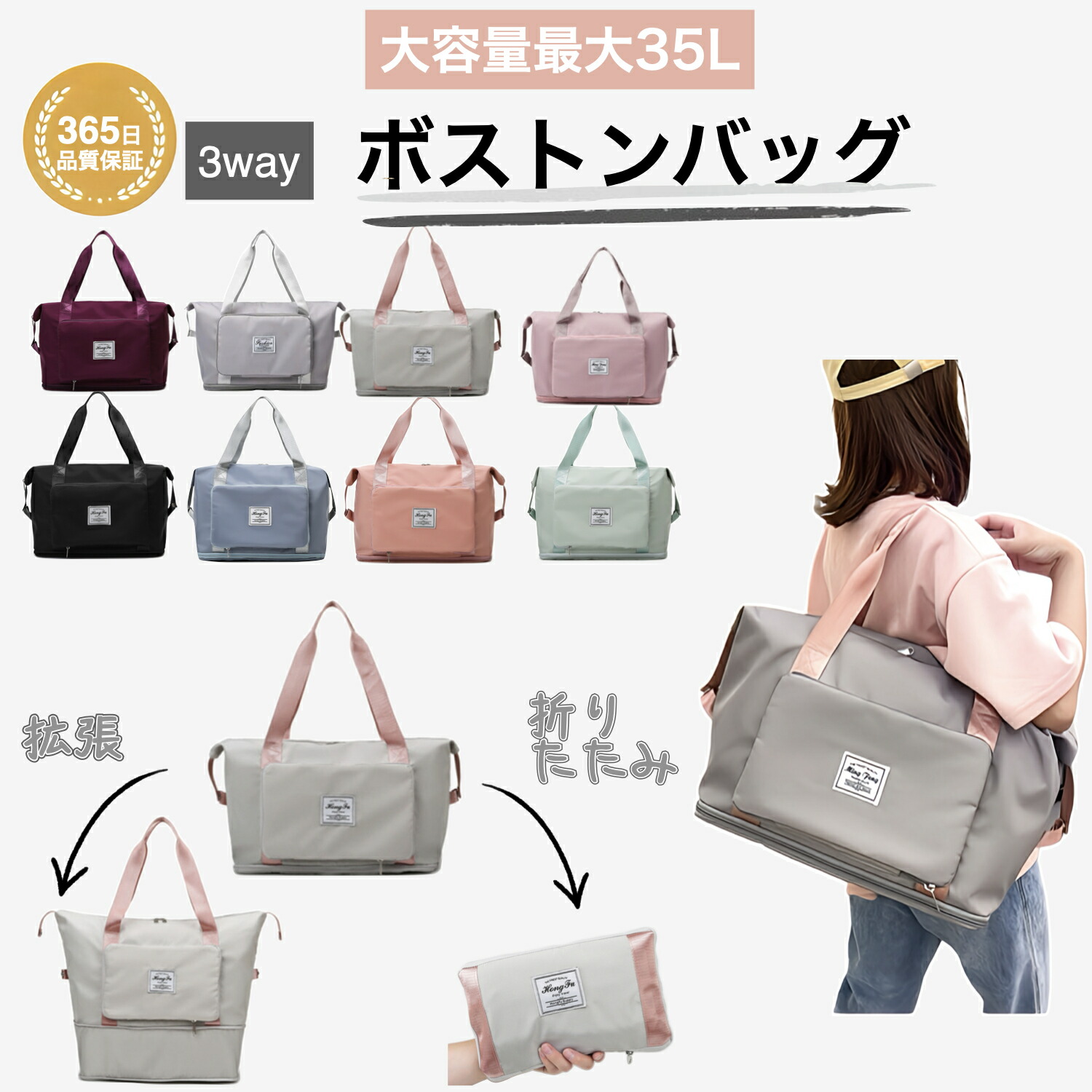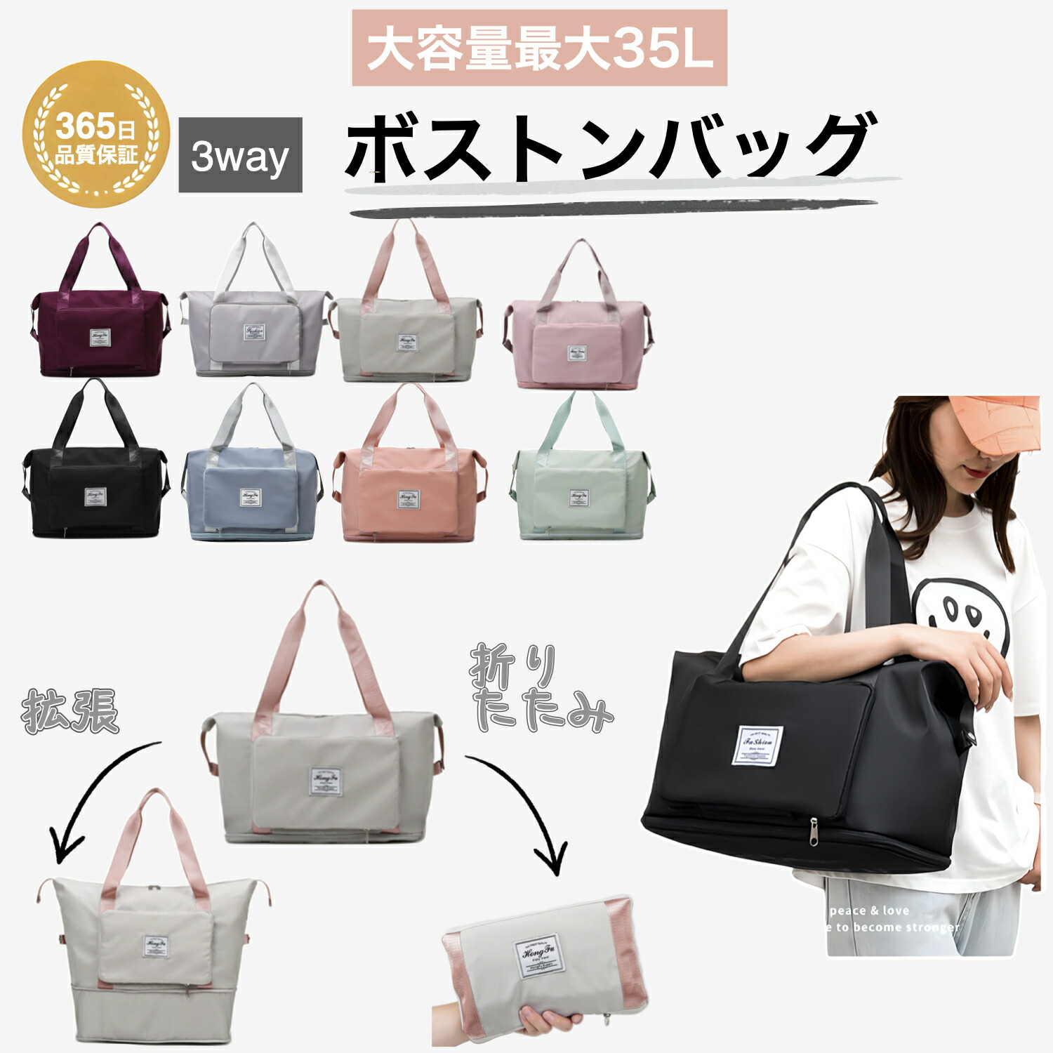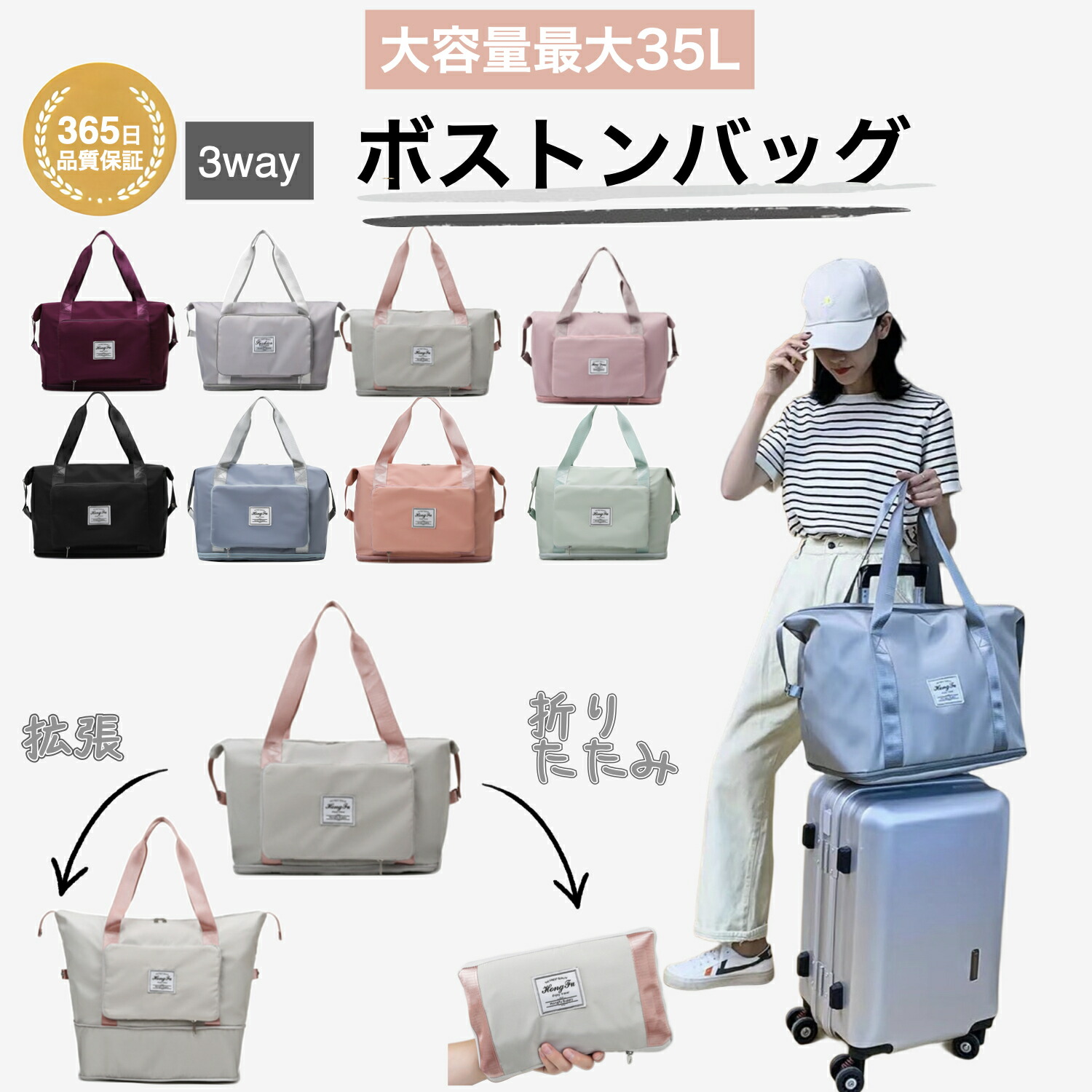 折りたたみ ボストンバッグ 軽量 レディース 大容量 旅行バッグ 1泊 2泊 旅行 女子 ジムバック ショルダー 旅行カバン キャリー 修学旅行 肩掛け