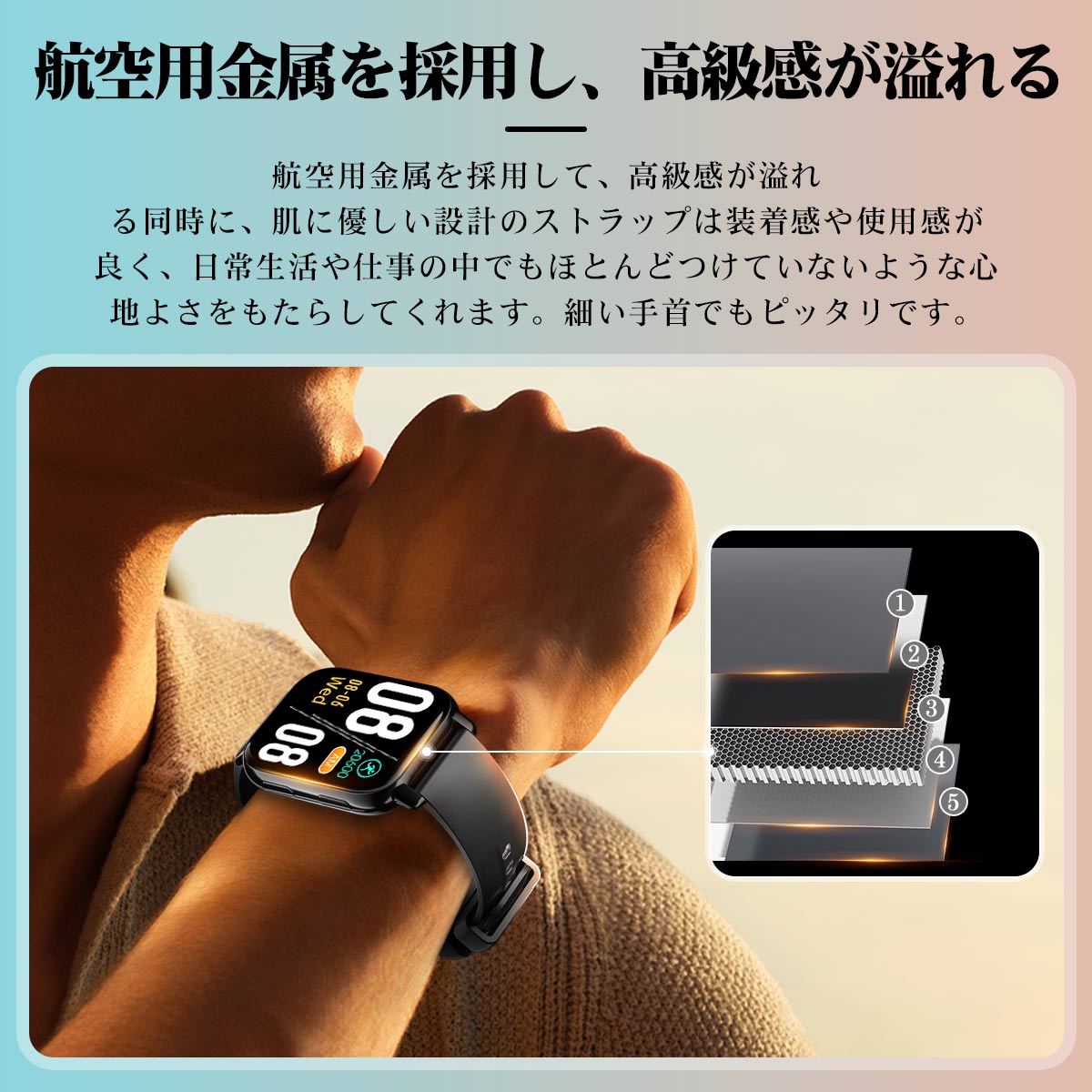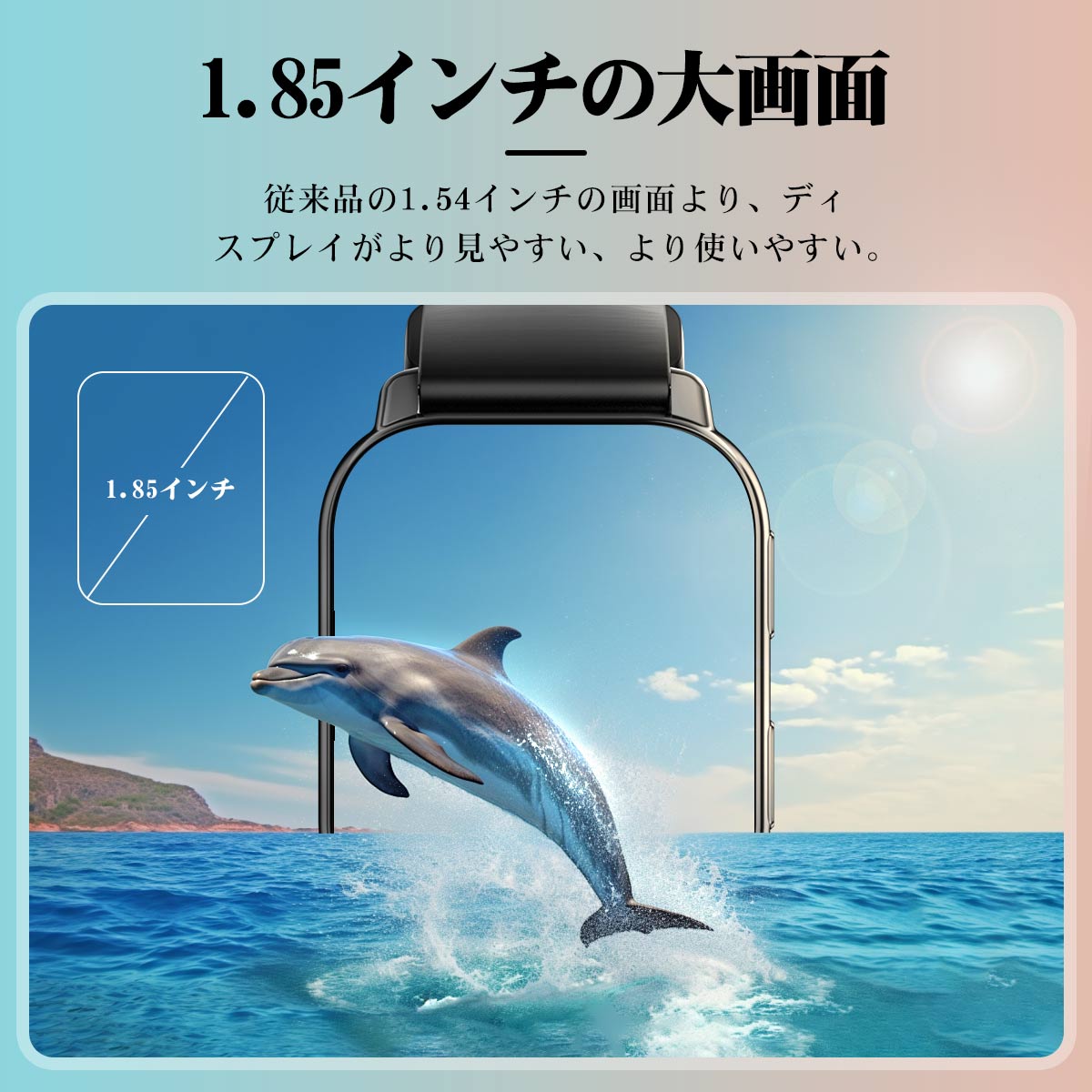 スマートウォッチ 通話機能 1.85インチ大画面 高解像度 日本製センサー 健康管理 着信通知 メール通知 運動モード 睡眠検測 プレゼント 敬老の日