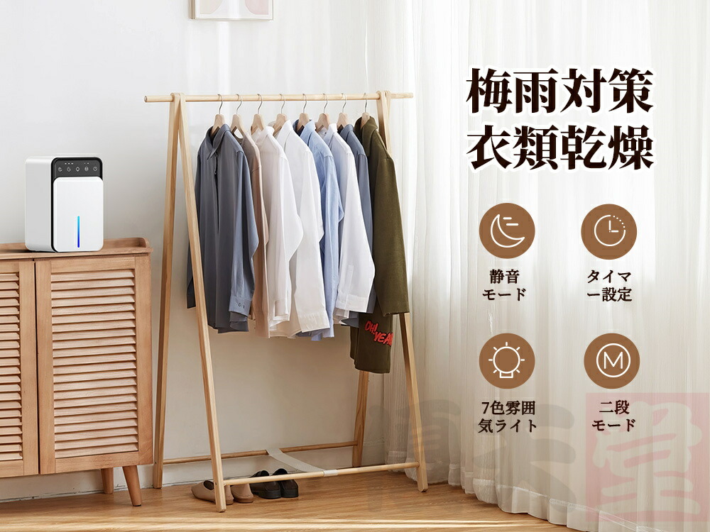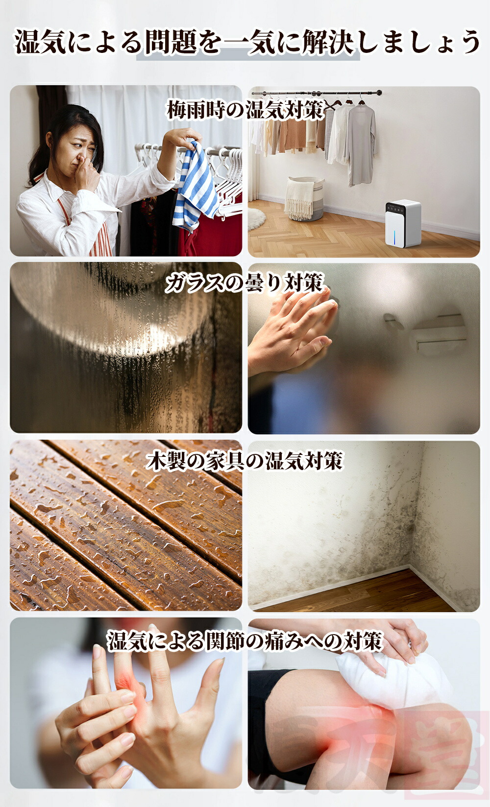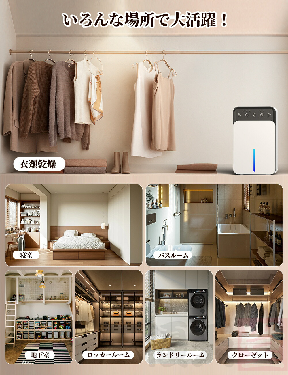 この衣類乾燥除湿機はA4サイズのようなコンパクトなサイズで、寝室、クローゼット、洗面所、オフィス、地下室、トイレ、靴箱などの換気の悪い場所に最適です。収納時にも邪魔になりません。木製家具や壁のカビ、ガラスの曇り、湿った服の嫌な臭いなど、さまざまな問題を予防します。その他にも、除湿機には「自動解凍機能」が備わっており、起動時には自動的に結露を取り除きます。夏や雨の季節には衣類を乾燥させたり、冬の間に室内で洗濯物を乾かすためにも非常に効果的です。優れた除湿能力により、一年中快適な室内環境を実現できます!