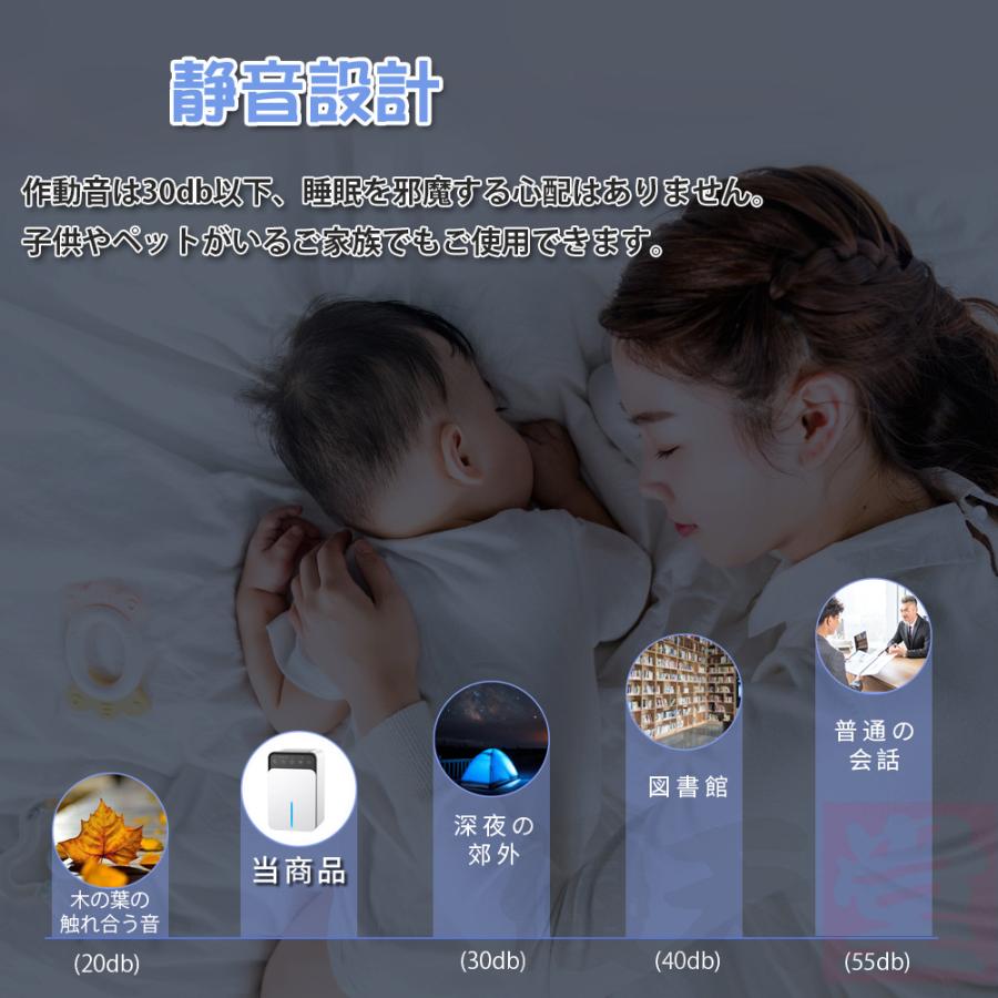 除湿機は2つのライトモードがあり、7色変換と単色の調整が可能で、光に敏感な方にも直接消灯できます。また、独立した静音モードがあり、作動中ほとんど音がなく、睡眠、仕事、読書に妨げにならず、静かな睡眠環境で快眠できます。さらに、6時間/8時間/10時間のタイマー機能が付いており、生活リズムや環境に合わせて自動的に消すことができます。