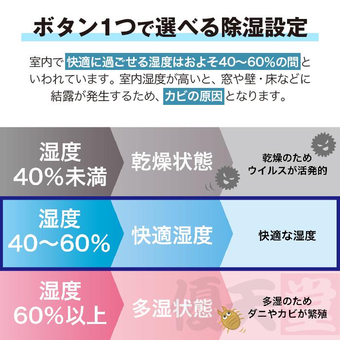この除湿機は、80%RH、室温30℃の環境条件での厳格なテストにより、驚くべき除湿能力の高さを確認いたしました!一日あたりの除湿量はなんと350mlです!しかも、内蔵のペルチェ素子による冷却と凝結により、空気中の湿気を迅速かつ効果的に取り除きます。ダニ、結露、異臭、カビなど、湿気による問題を効果的に防ぎ、快適で乾燥した空間を提供します!この除湿機は、梅雨の時期に湿気を取り除く理想のパートナーです!皆さまも是非お試しください!