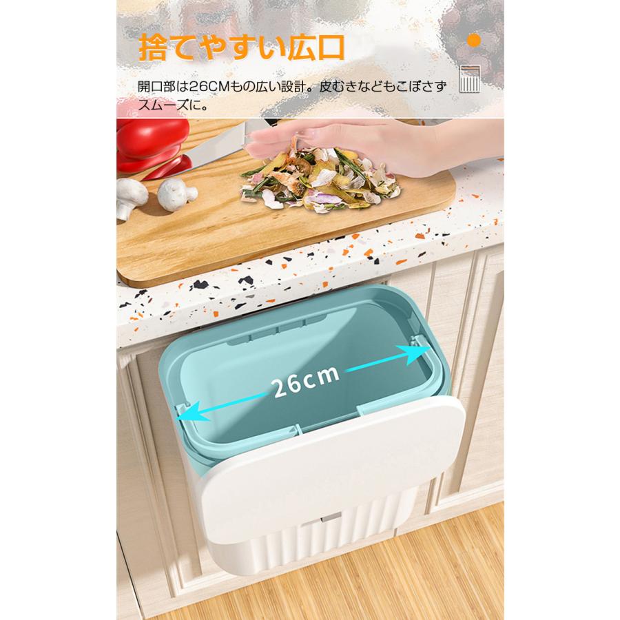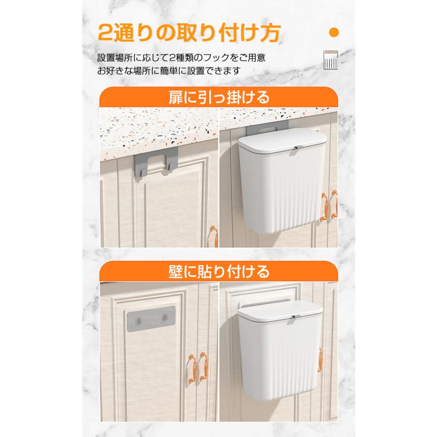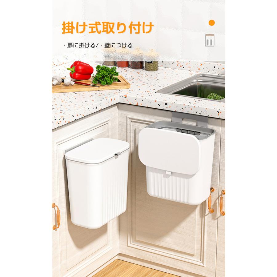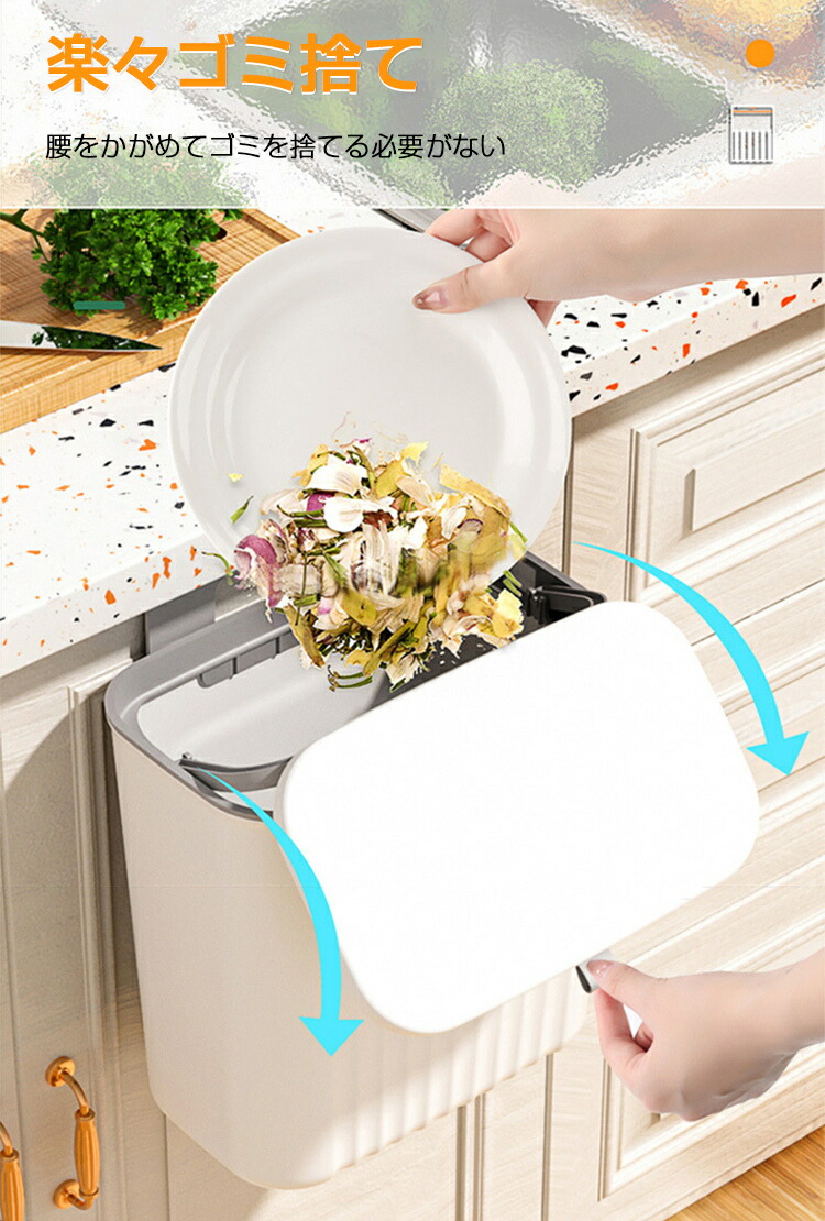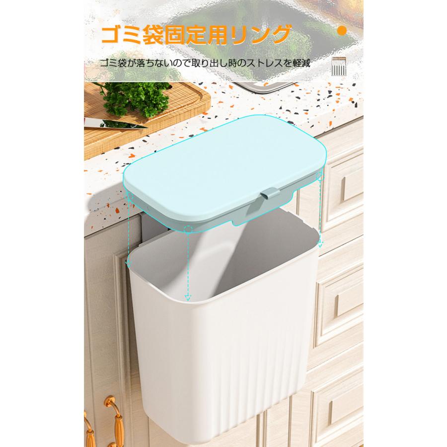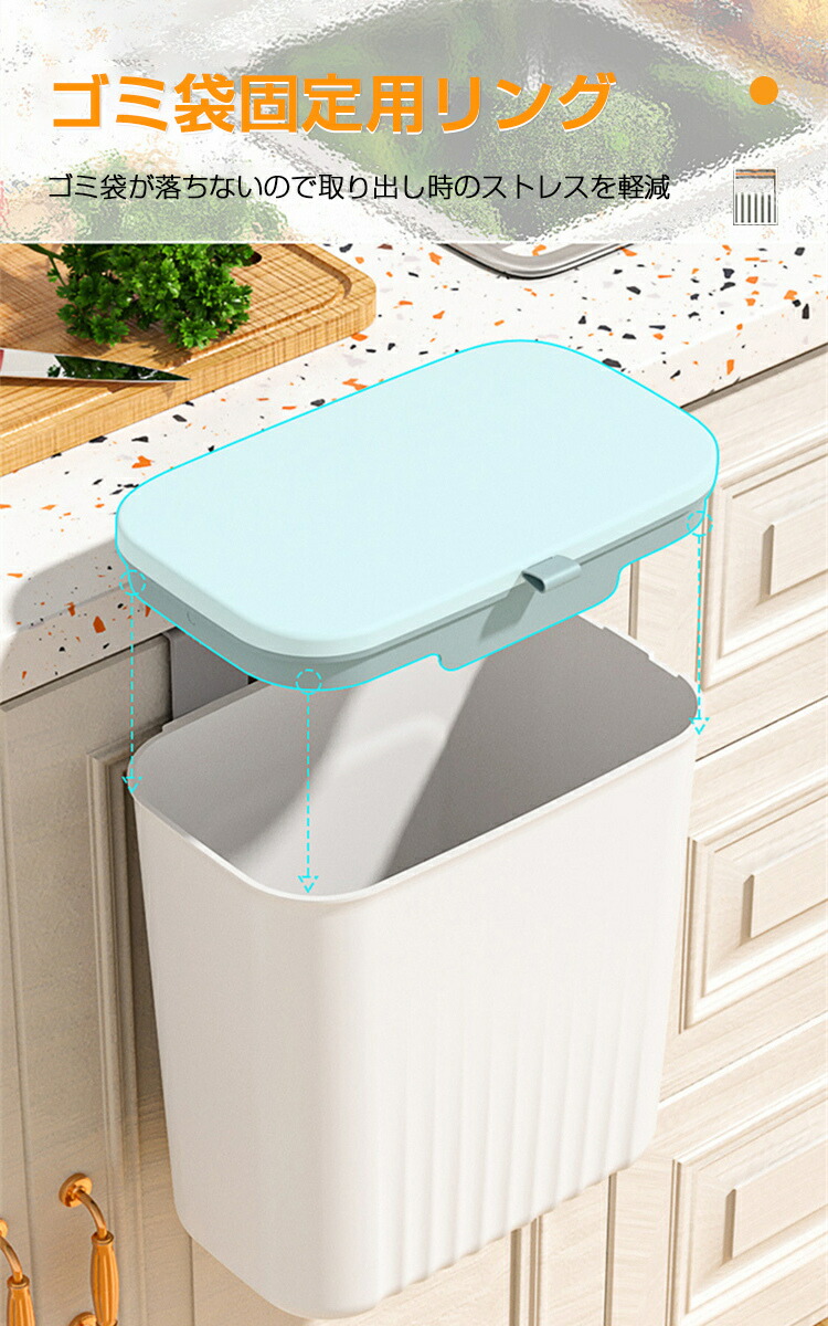 ゴミ箱 おしゃれ キッチン 壁掛けゴミ箱 ふた付き 壁掛け 9L 広口 壁掛け式 ぶら下げ 蓋付き 生ごみ シンプル 調理台 シンクの扉に 引出し 台所 オフィス 洗面所