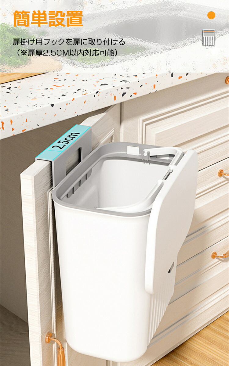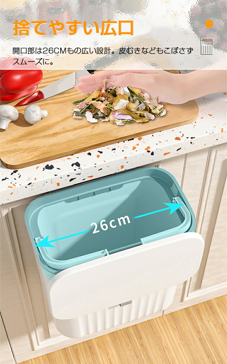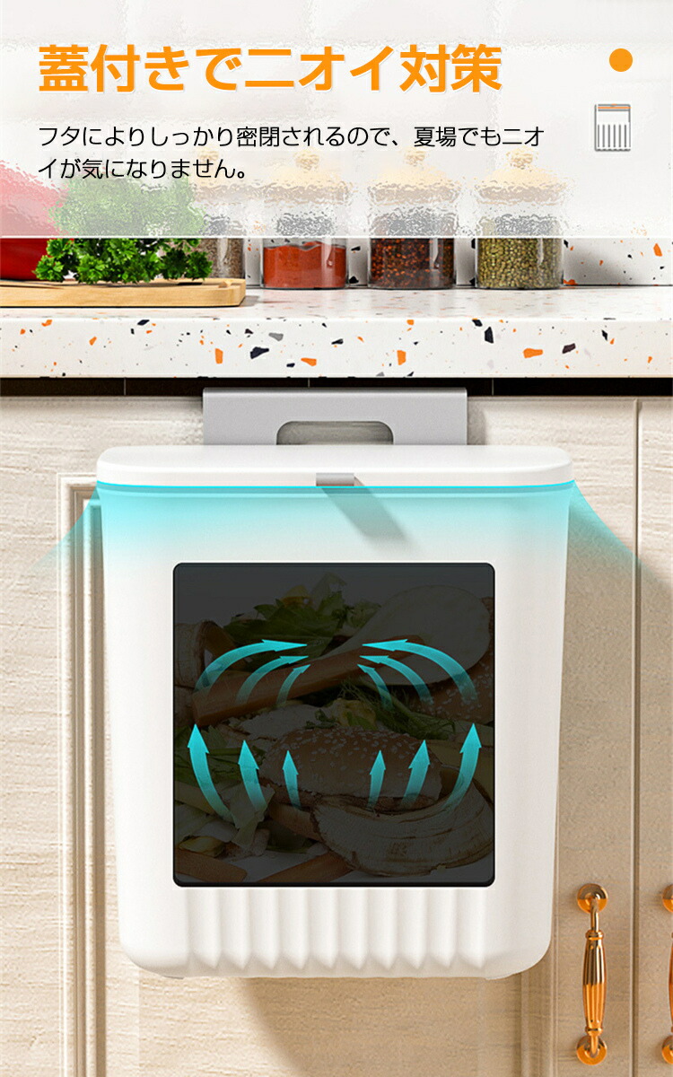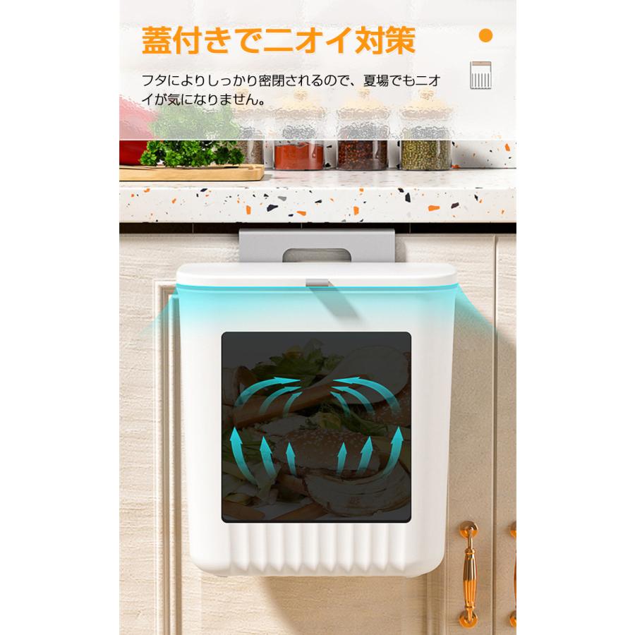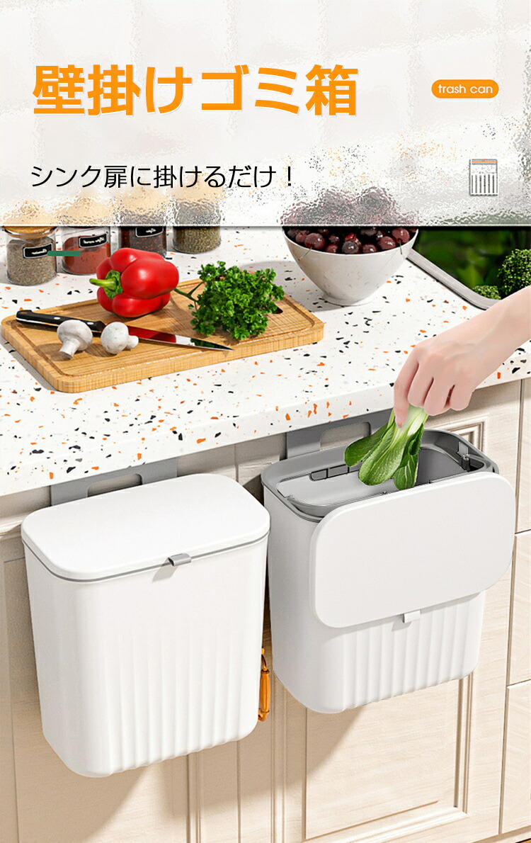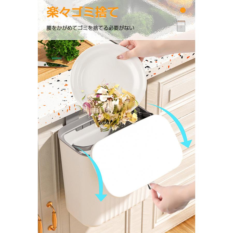ゴミ箱 おしゃれ キッチン 壁掛けゴミ箱 ふた付き 壁掛け 9L 広口 壁掛け式 ぶら下げ 蓋付き 生ごみ シンプル 調理台 シンクの扉に 引出し 台所 オフィス 洗面所