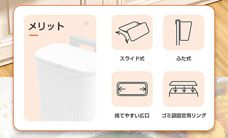 スライド式は、蓋が邪魔になることなく、広い口でごみをしっかり受け入れます。