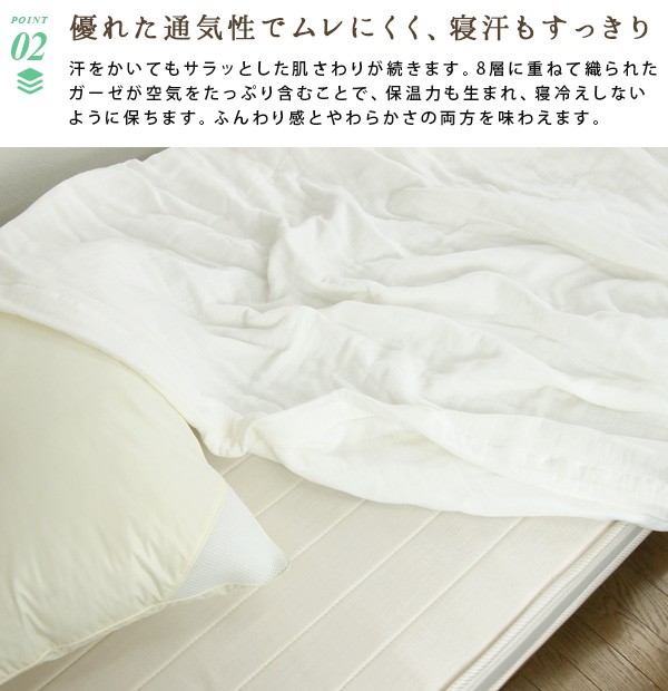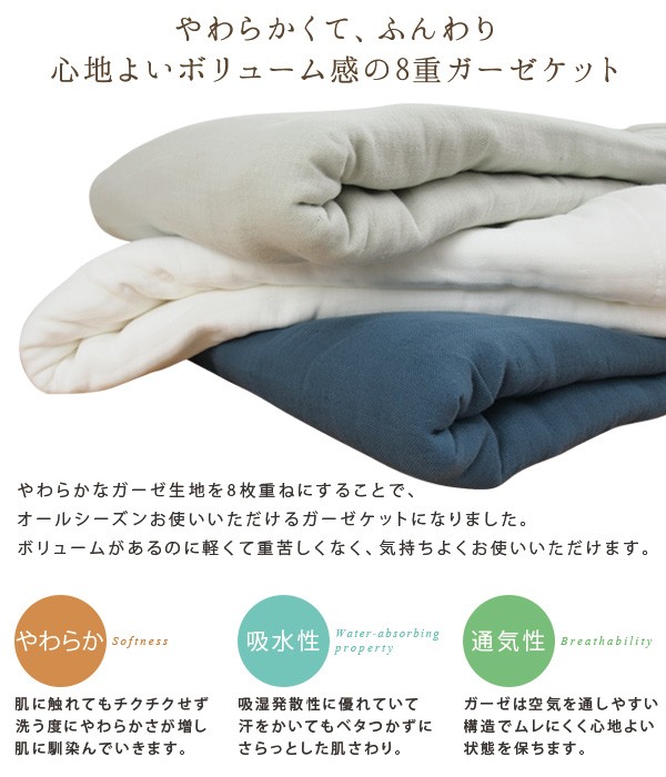 やわらかくてふんわり、心地よいボリューム感の8重ガーゼケット。