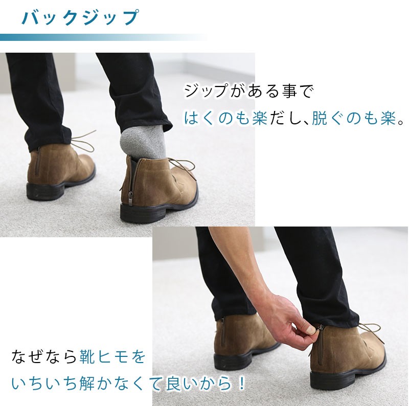 靴紐 結ばない ブーツ として ビジネス カジュアルのオンオフ兼用 にもなっているます。