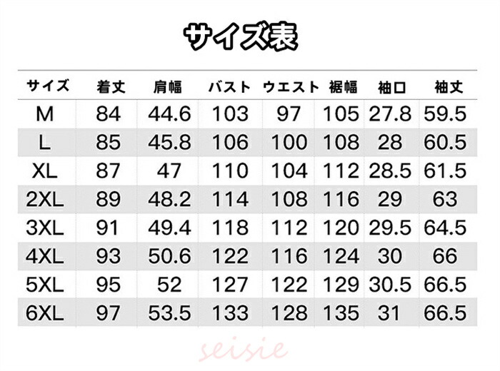 サイズ: M(S相当) L(M相当) XL(L相当) 2XL(XL相当) 3XL(2XL相当) 4XL(3XL相当) 5XL(4XL相当) 6XL(5XL相当)