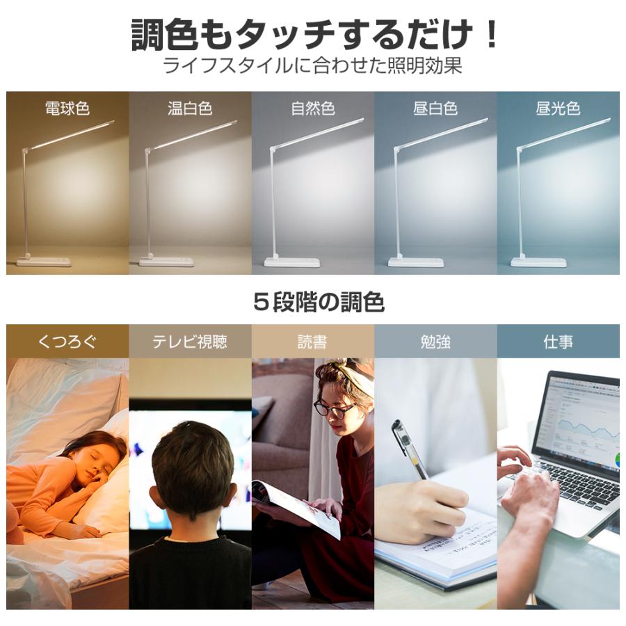 デスクライト led 目に優しい 電気スタンド 卓上ライト 子供 折り畳み式 省エネ 5段調色 10段階調光 タッチセンサー タイマー 読書灯 省エネ