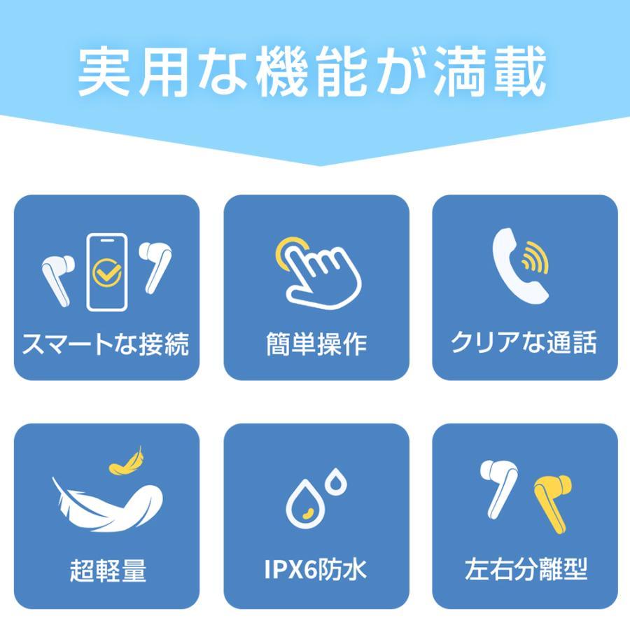 ワイヤレスイヤホン高音質 両耳 片耳 軽量 残量表示 自動ペアリング IPX6防水 iPhone Android対応 Bluetooth5.3 ワイヤレス イヤホン ノイズキャンセリング
