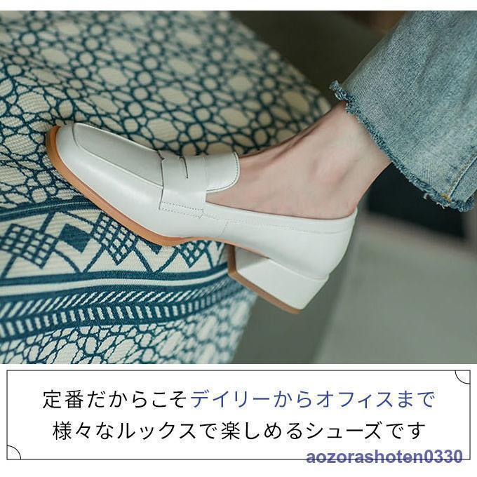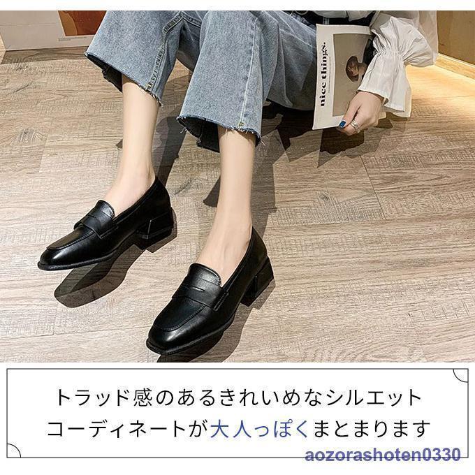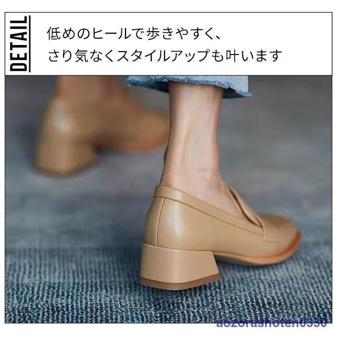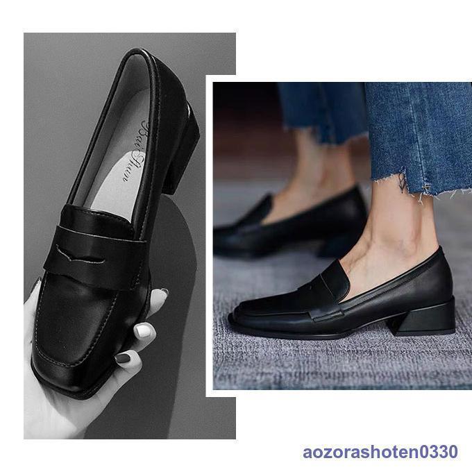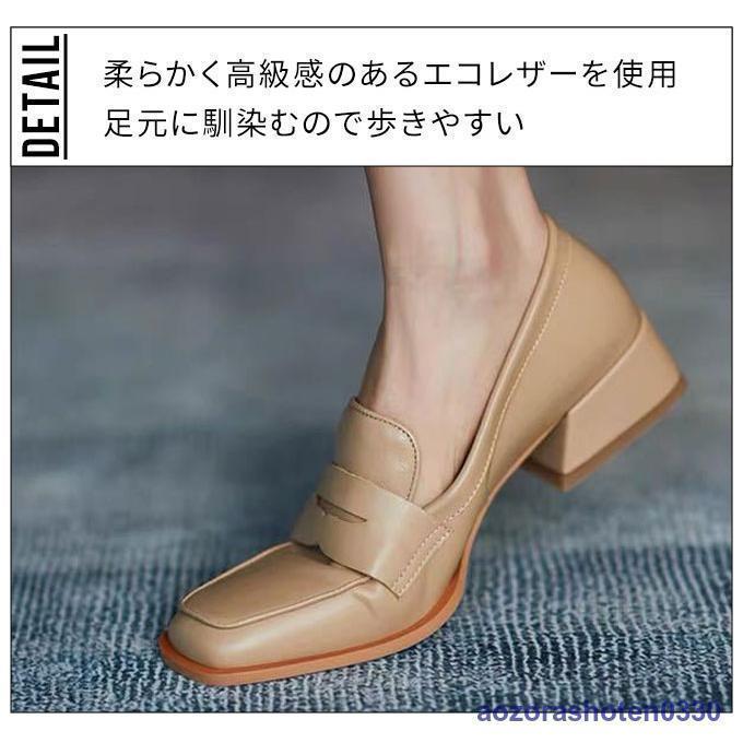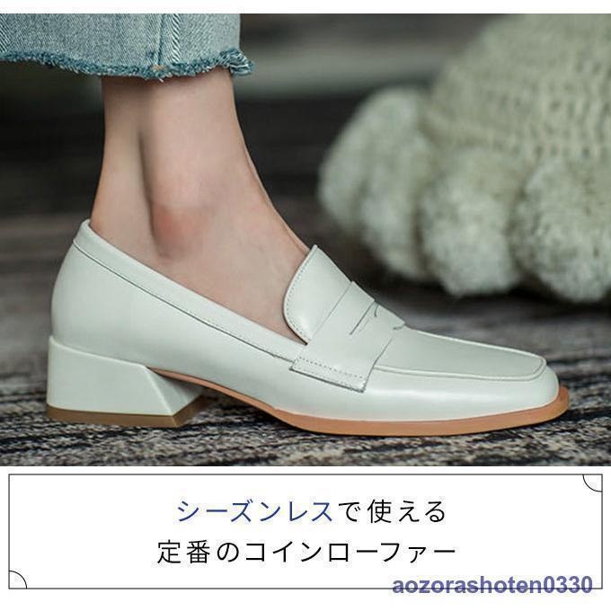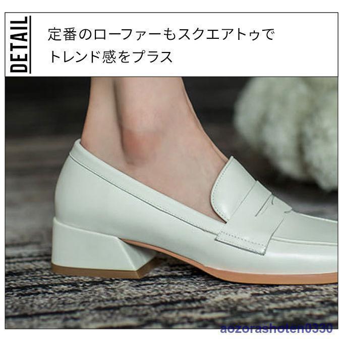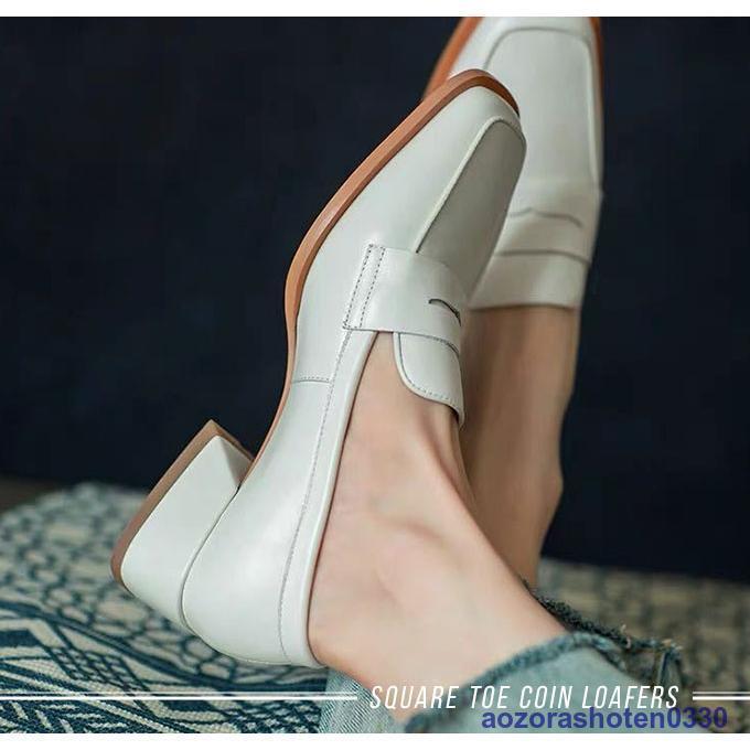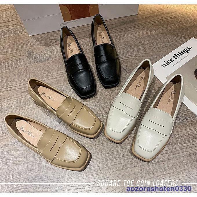 ローファー レディース ヒール 軽い スクエアトゥ 秋 痛くない コインローファー アイボリー キャメル ブラック 6サイズ展開
