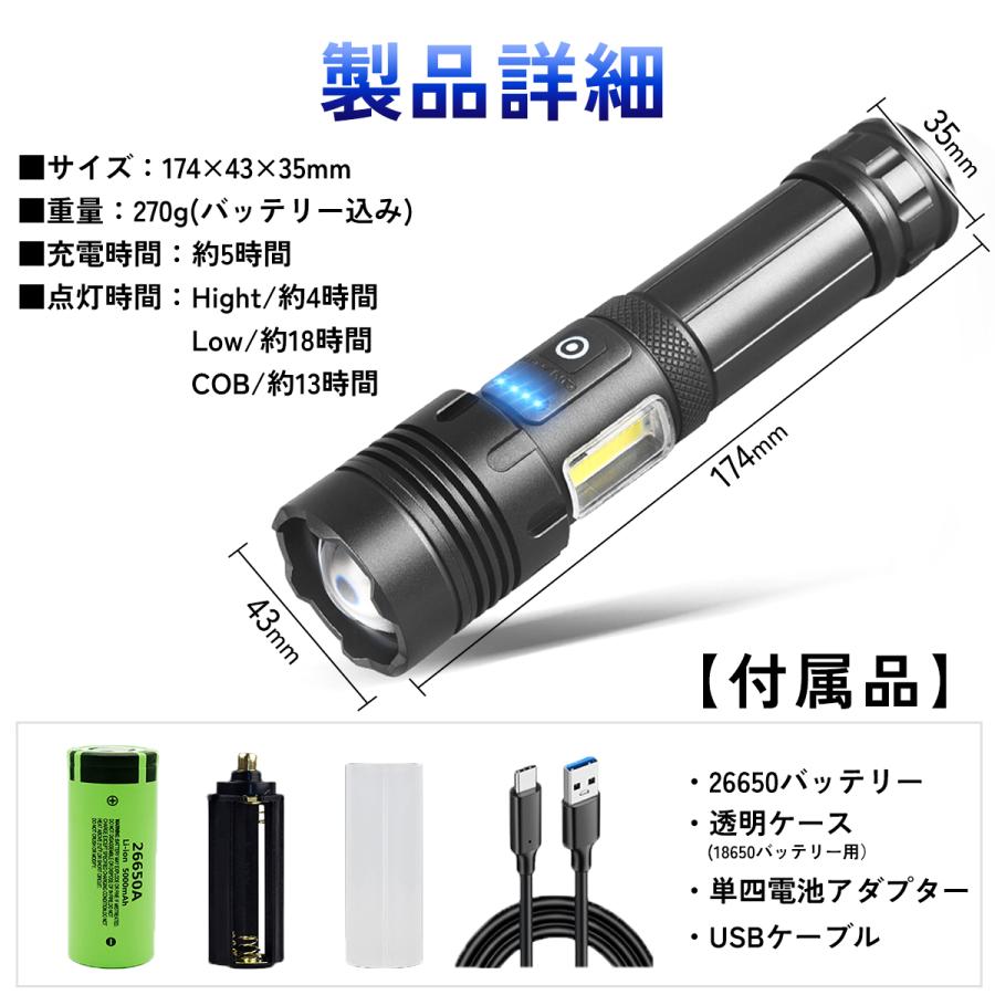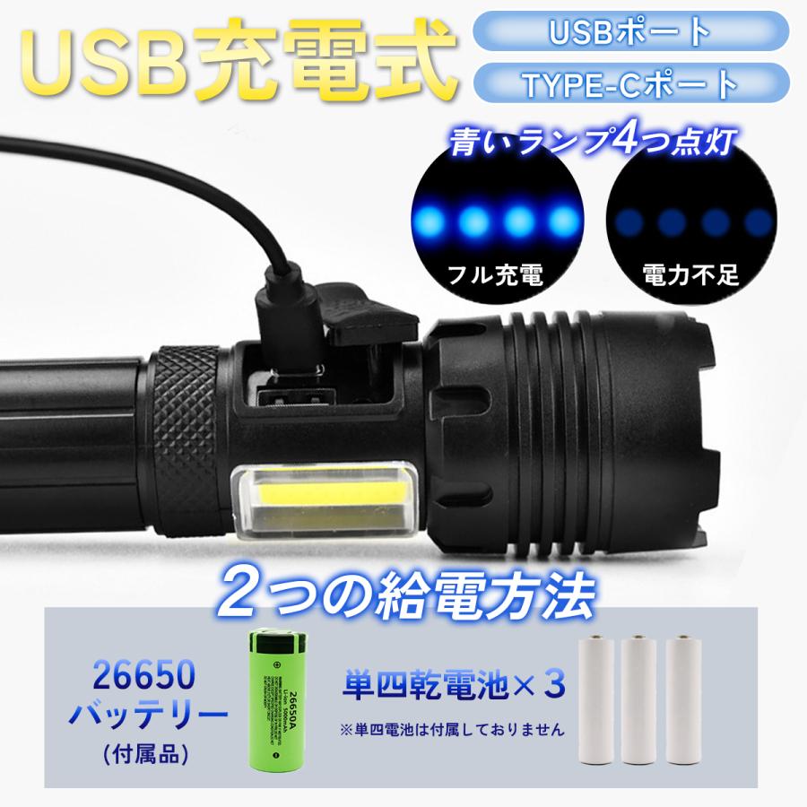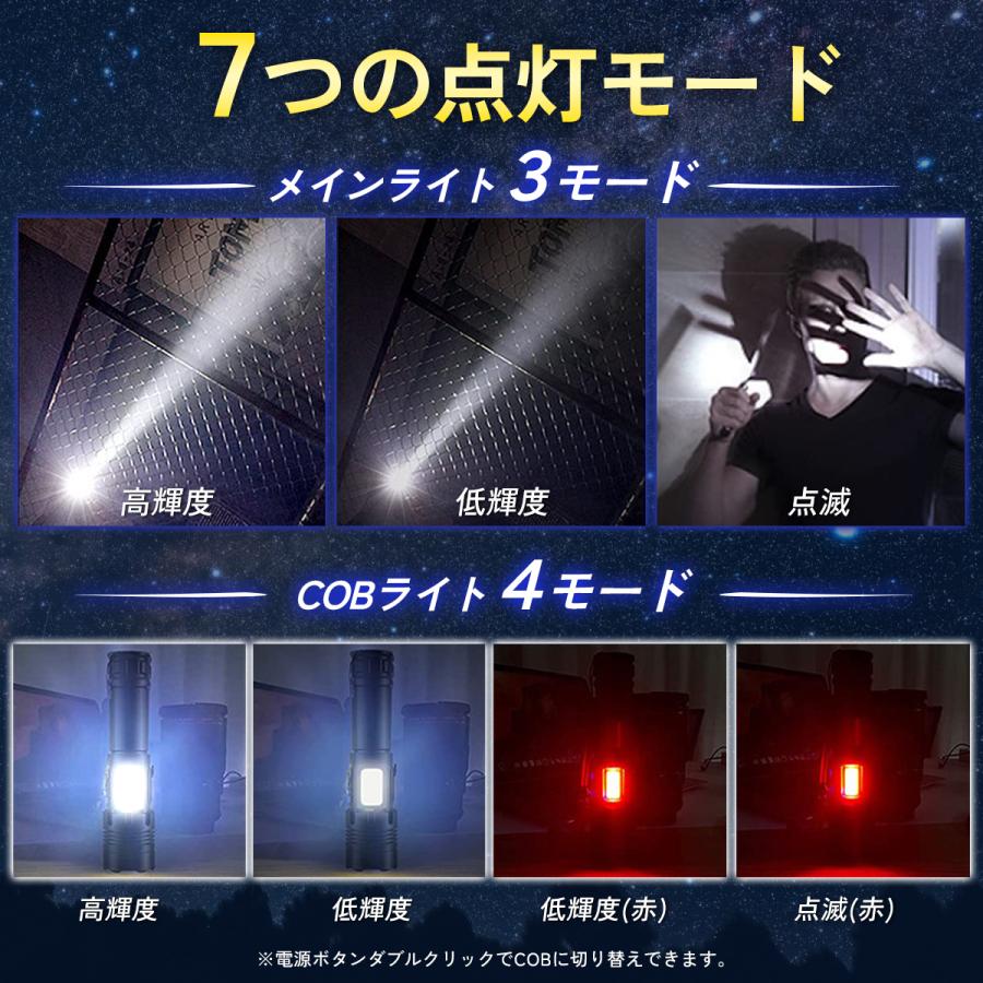 懐中電灯 led 強力 軍用 ledライト led懐中電灯 ハンディライト 充電式 cob ledライト タクティカルライト 最強 爆光