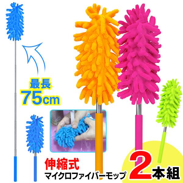 2本セット ハンディモップ 伸縮 洗える マイクロファイバー はたき 掃除 天井 エアコン ほこり 湿気 モップ ミニ 収納