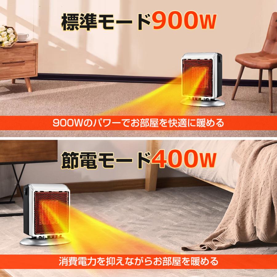 セラミックヒーター 小型 足元 オフィス 省エネ 900 400W おしゃれ 即暖 過熱保護 電気ファンヒーター 即暖 2段階切替 冬