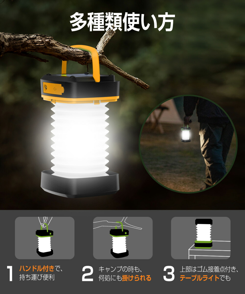 ランタン led ソーラー 充電式 3Way仕様 超高輝度 10時間連続 2色 モバイルバッテリー機能付き 災害用 懐中電灯 アウトドア キャンプライト 敬老の日