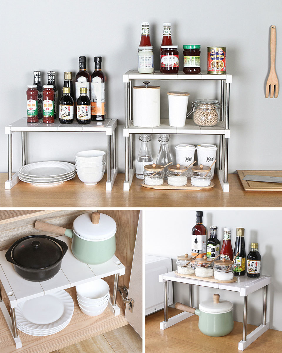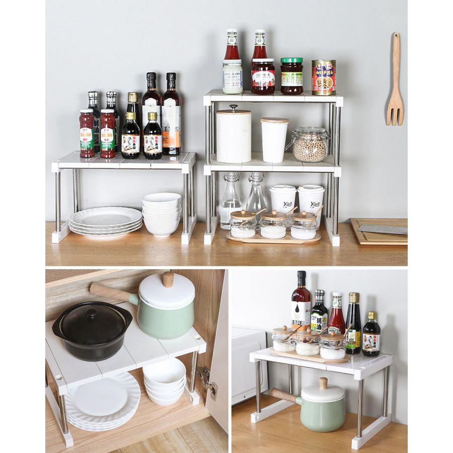 調味料や小皿など、キッチンに数多くの小物があります。そんな多くの小物を収納できる収納ラックです。上下に物を収納できるので、空間を活用して、見た目もキレイに収納することが出来ます。効率良く、お料理をするためには整理整頓が必要です。
