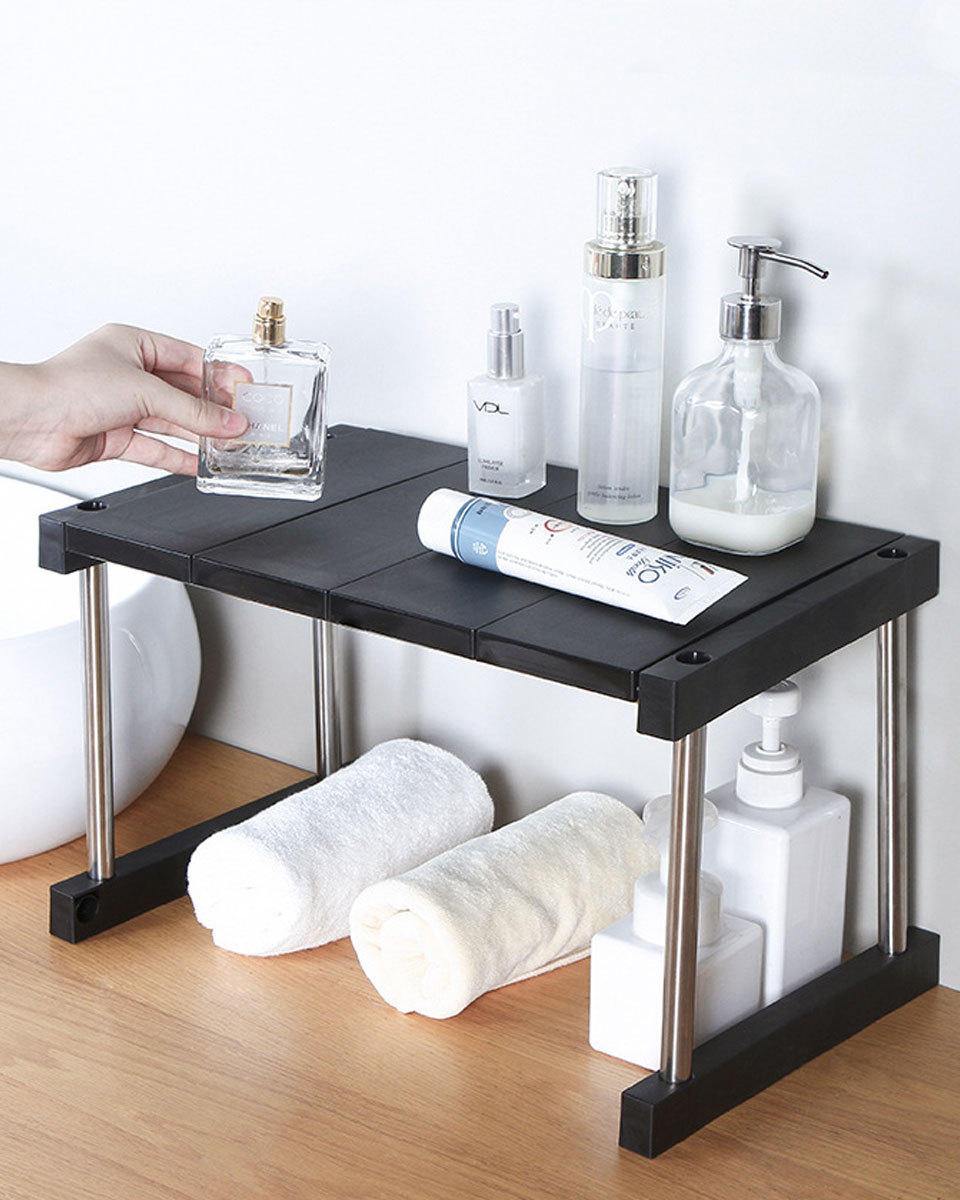キッチンや洗面所、化粧台などの卓上はもちろん、リビングや廊下、玄関などの床上のスペースを有効活用して、小物を収納できるラックです。サイズが合えば、シンク下のスペースも整理整頓できるラックです。