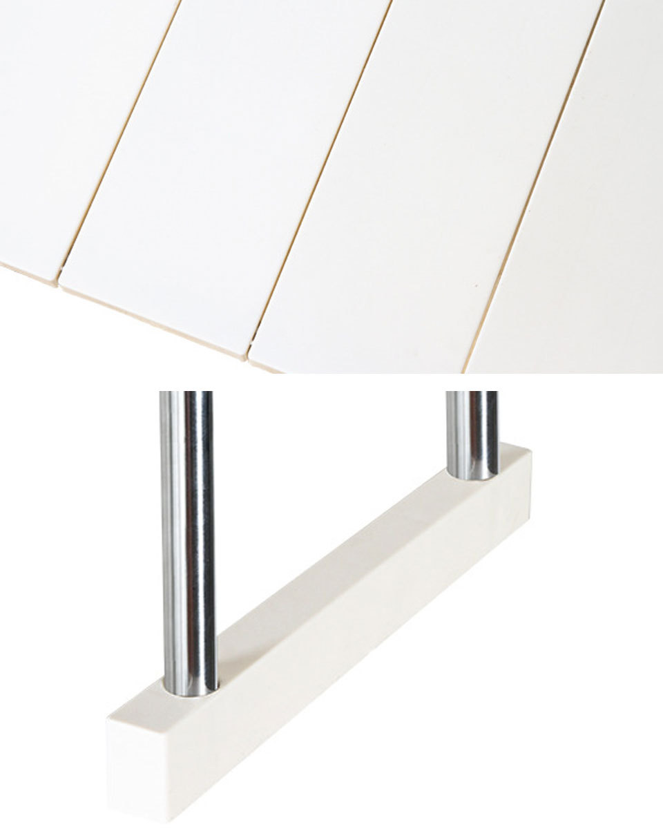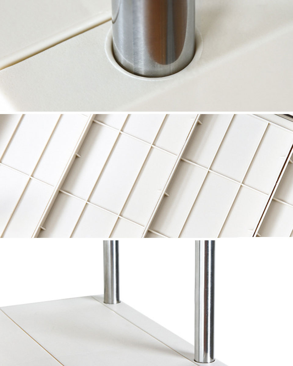 脚部は、丈夫で錆びにくいステンレスを採用した収納ラック。プレートにも梁をつけているので、耐久性の高いラックです。