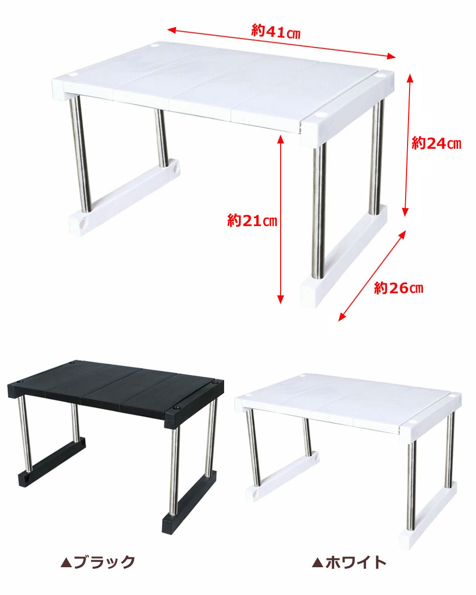 タイプ 収納ラック(1段)カラー ブラック、ホワイトサイズ 幅約41cm×高さ約24cm×奥行約26cm耐荷重 約40kg商品について 【スペースに合わせて有効活用できる収納棚】
