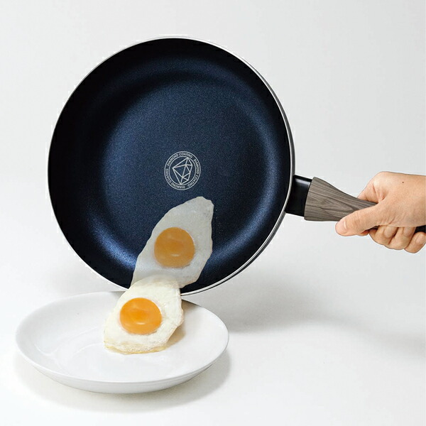 優れた熱伝導率で、食材に火が通りやすい。 ダイヤモンド微粒子を使用し、高い耐久性を実現。 キズ、コーティングのはがれに非常に強い。 本体は、縁出し加工で変形しにくい。 金属調理器具が使える。 ガスコンロIH200V熱源に対応。 食材が焦げ付きにくく、お手入れもラクラク。 少ない油で調理でき、節約やカロリーオフにも貢献。