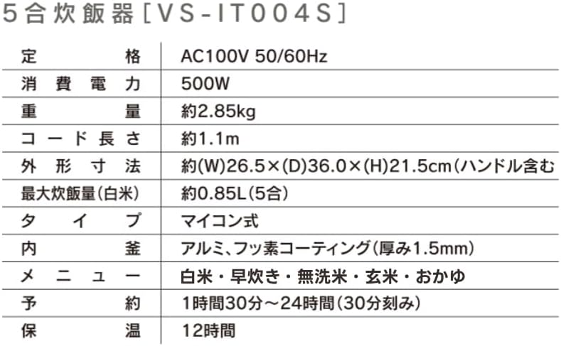 内釜:アルミ、フッ素コーティング(厚み1.5mm)