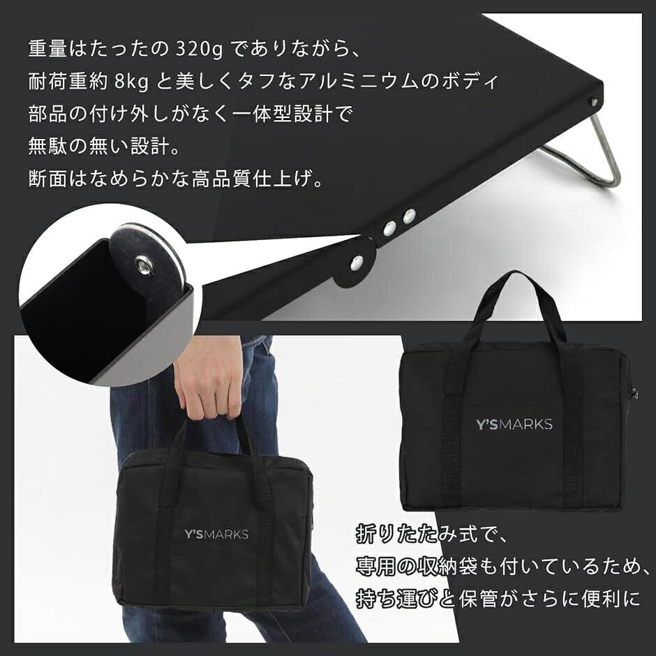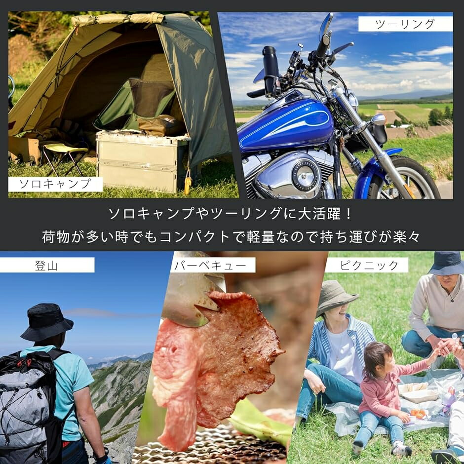 ソロキャンプの時や、テント内で物を置く時に使っていただけ、ツーリングキャンプやハイキング、BBQなどにも応用できます。