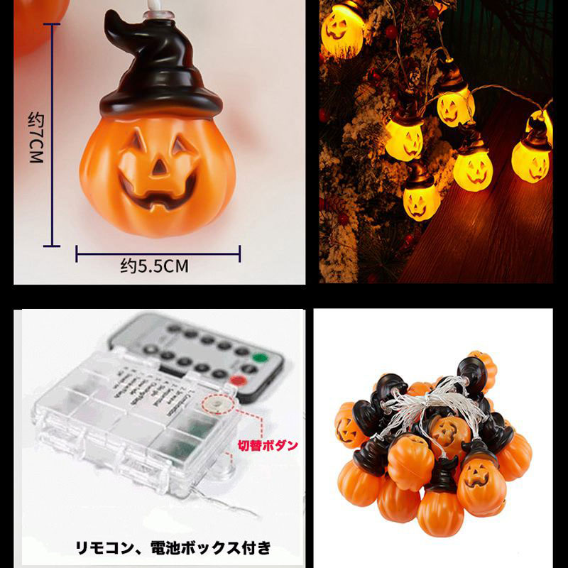 LEDイルミネーション ハロウィン 飾り 装飾 ライト カボチャ 20球 3m 電池式 リモコン付 8パターンタイマー機能 防水 防塵仕様 ハロウィン 飾り
