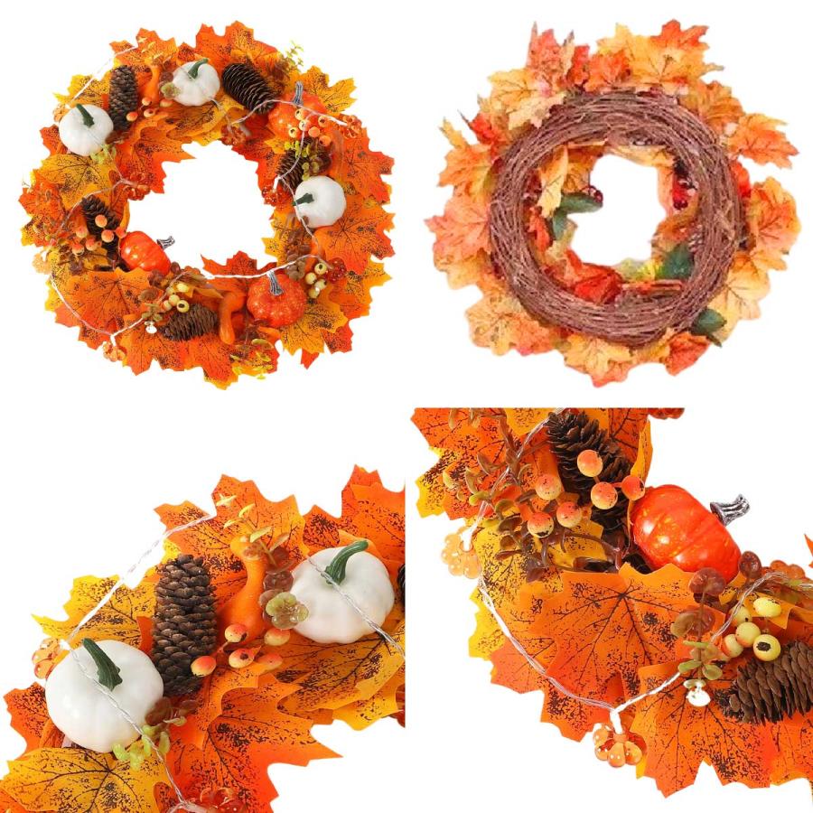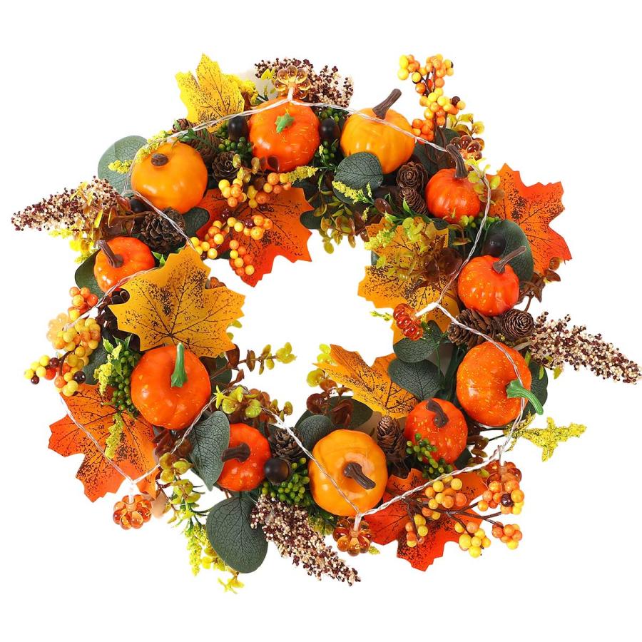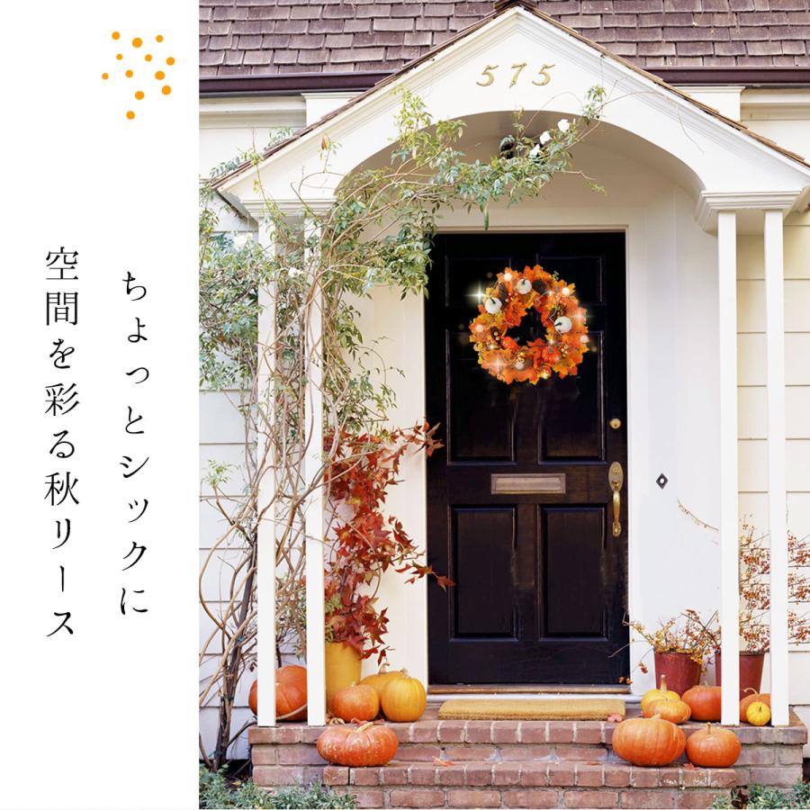 【 お洒落なハロウィンリース 】優しい色合いでインテリアにもマッチし、オレンジ色のかぼちゃがハロウィン気分をグッと盛り上げます♪