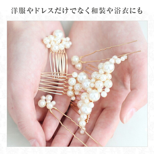 ヘアアクセサリー 髪飾り かんざし 結婚式 成人式 卒業式 着物 留袖 黒留袖 和装 浴衣 花嫁 パール コーム ヘアピン Uピン