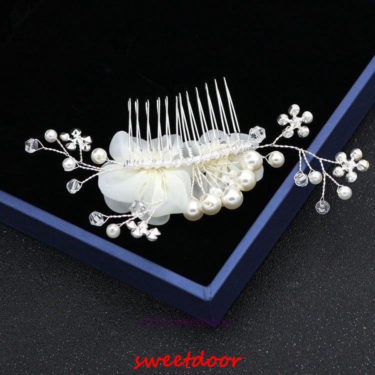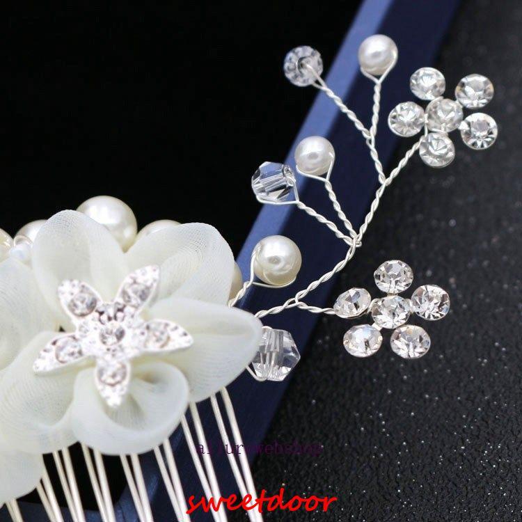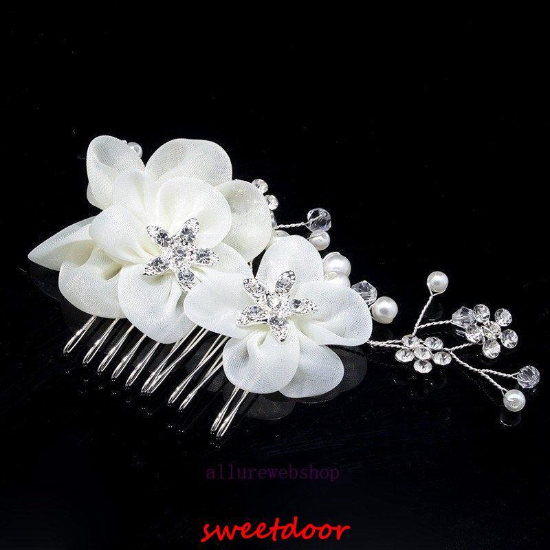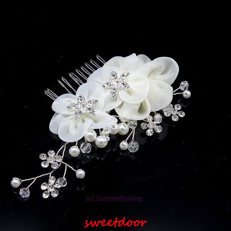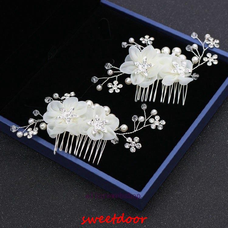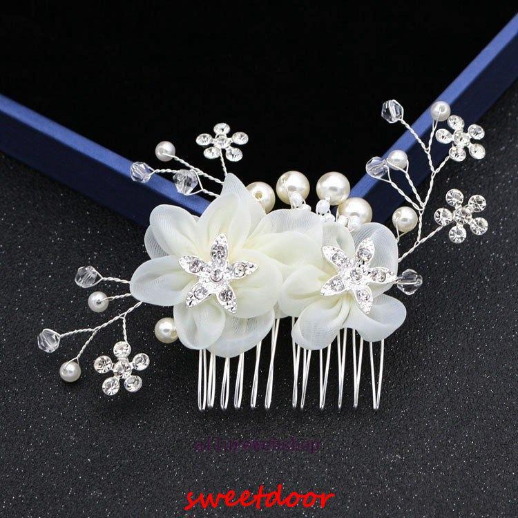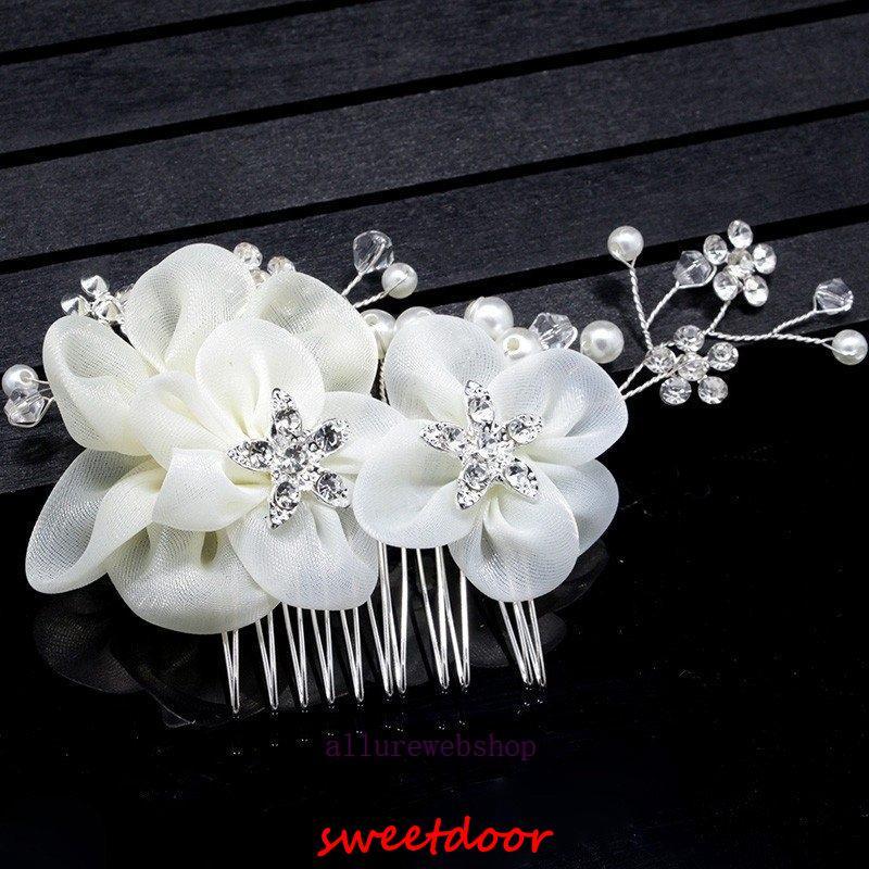 パールとラインストーンを丁寧に繋げたヘアアクセサリーです。花びらも華やかで柔らかい印象です。