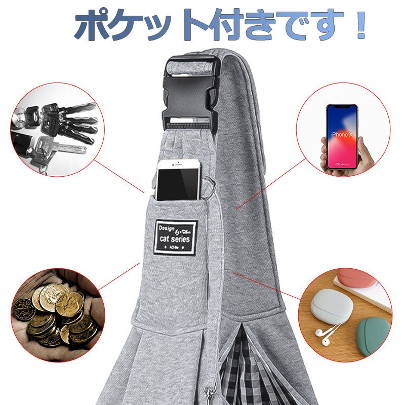 ペットスリングバッグ ドッグスリング 抱っこひも ショルダーバッグ 肩掛け 散歩 犬 猫 飛び出し防止 ポケット付き