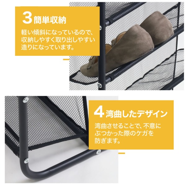 靴のキャビネットは10層の鋼管があるので、メッシュ部分がピンと張り、安定感があります。
