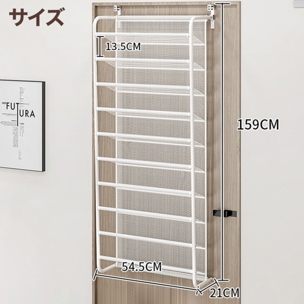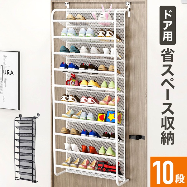 シューズラック 10段 シューズ ラック スリム 縦型 吊り下げ 収納 シューズ ボックス 30足 ドア フック 玄関 靴収納 靴箱 下駄箱 省スペース 引っ掛け