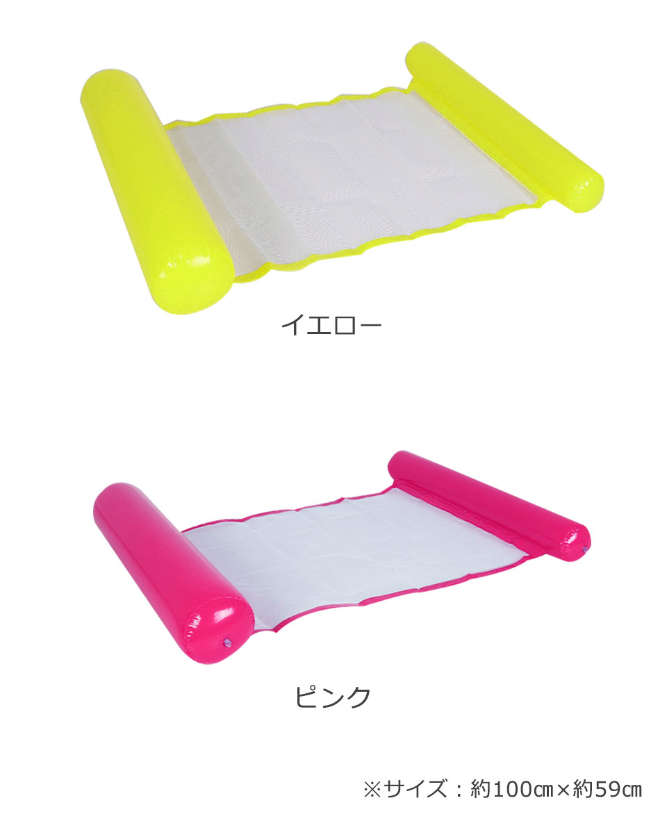 タイプ ウォーターハンモックカラー レッド、ブルー、イエロー、ピンクサイズ 約100cm×約59cm商品について 【水上でハンモックのようにユラユラできるウォーターハンモック】