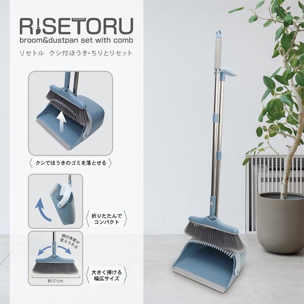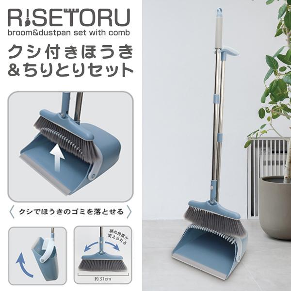 自立式/クシ付き ほうき&ちりとりセット