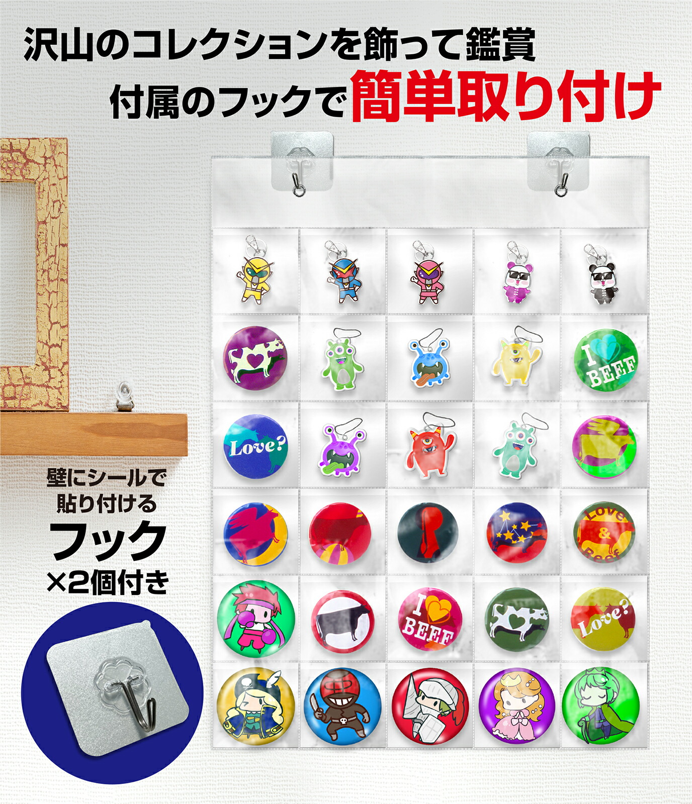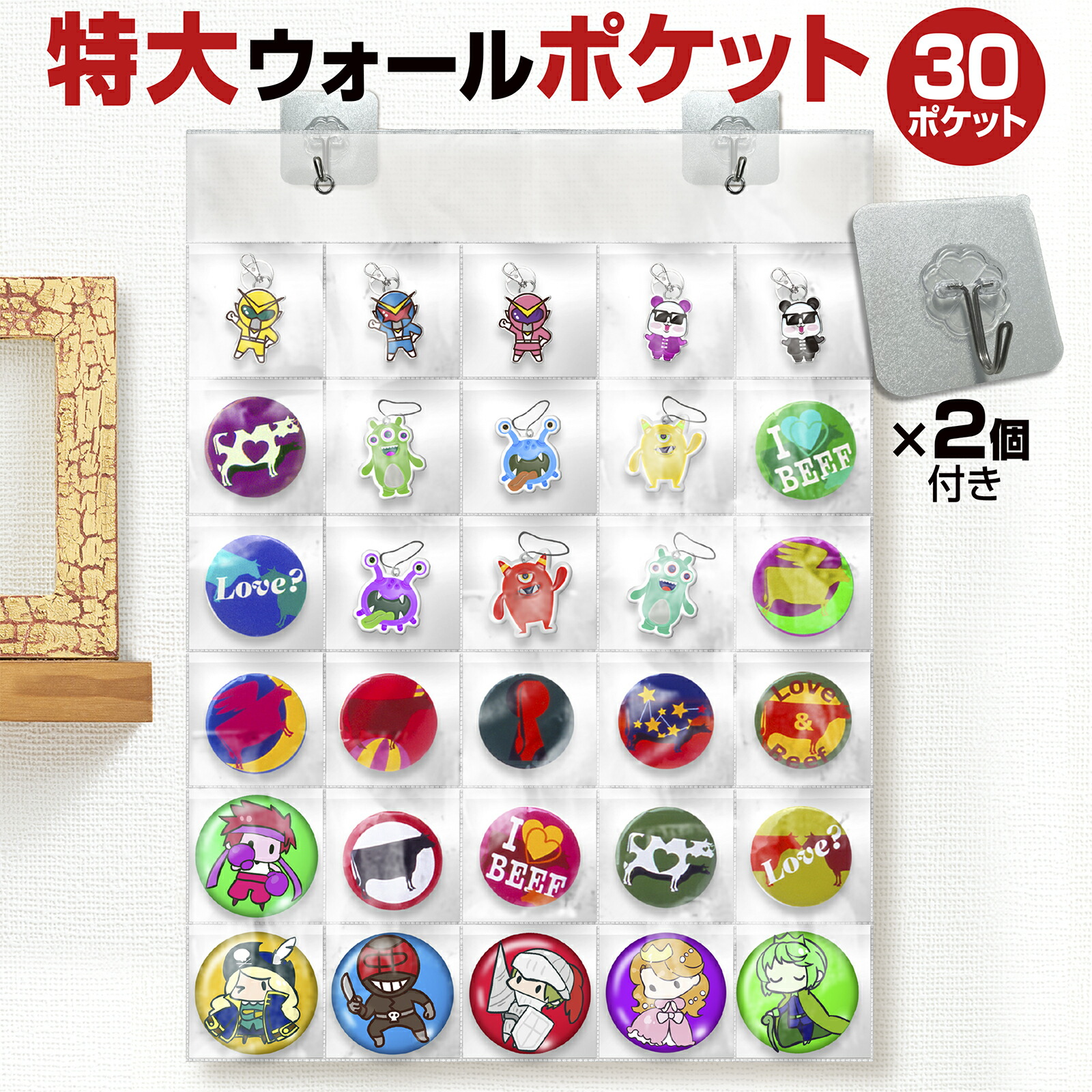 商品名ウォールポケット 特大ポケット 様々なグッズに対応 缶バッジ ラバーストラップ アクリルキーホルダー 収納 透明 クリア 壁掛けポケット 壁掛け収納