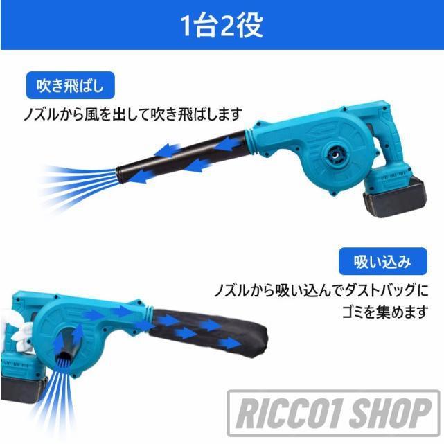 ブロワー 充電式 1台2役 マキタ バッテリ対応 強力 コードレス 充電式ブロワー 集塵機 送風機 充電器付き 落ち葉 枯葉 掃除機 洗車 除塵 除雪 ブロワ 家庭用