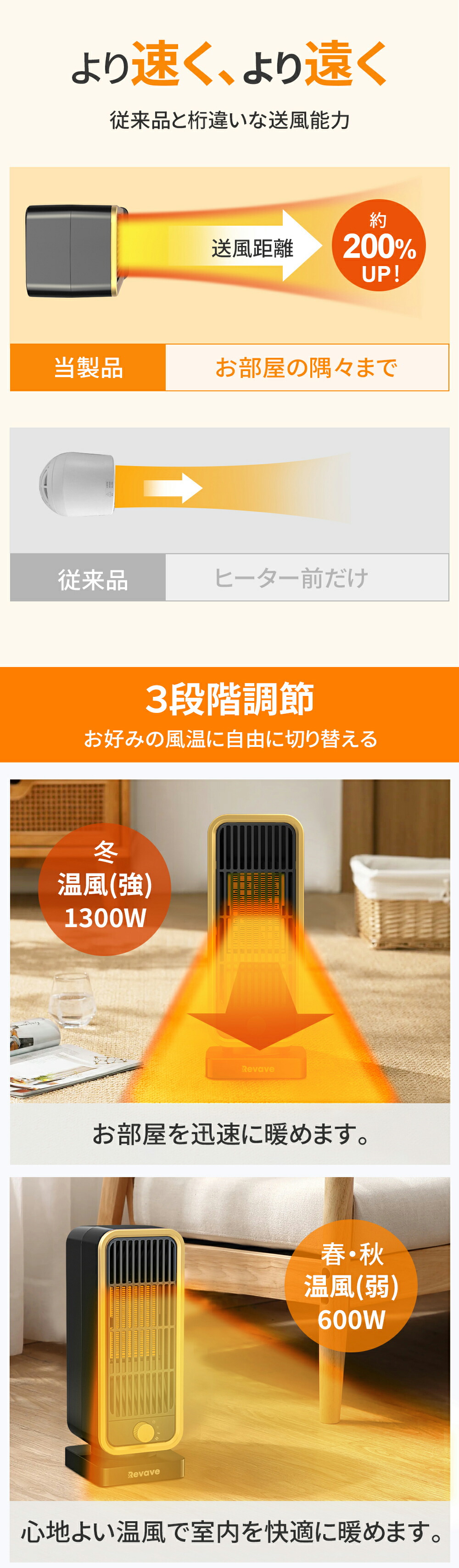 セラミックファンヒーター 2秒速暖 12畳部屋対応 転倒自動オフ マイナスイオン付き 軽量 卓上ヒーター 600W 1300W 3段階切替 足元ヒーター 省エネ