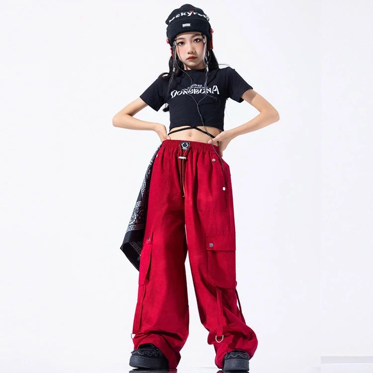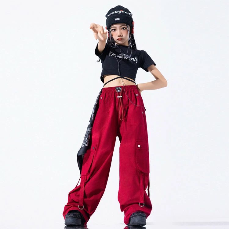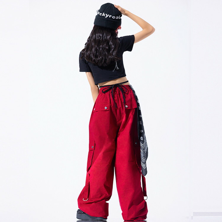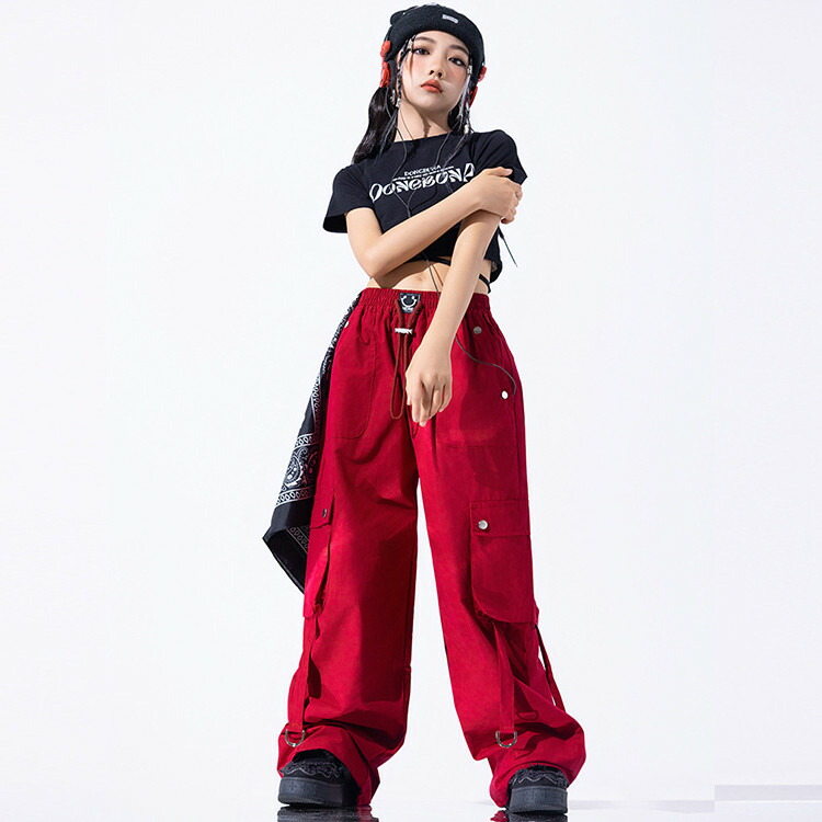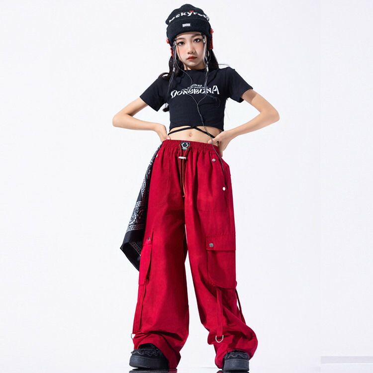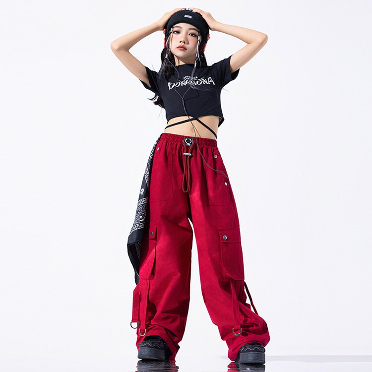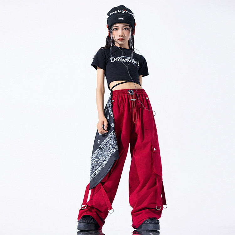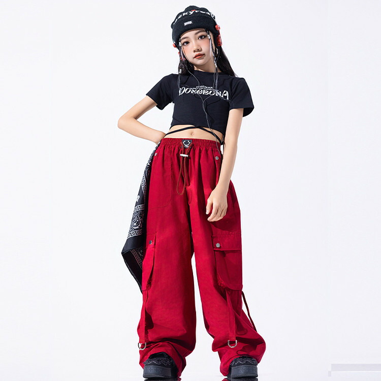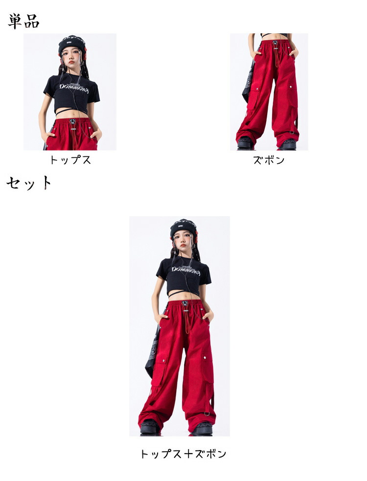 赤 黒 総柄 キッズ ダンス 衣装 女