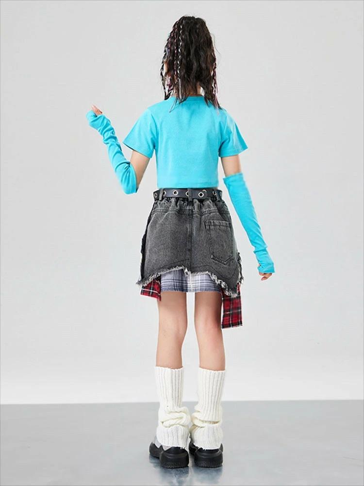 韓国 jazz ブルー トップス 腕カ