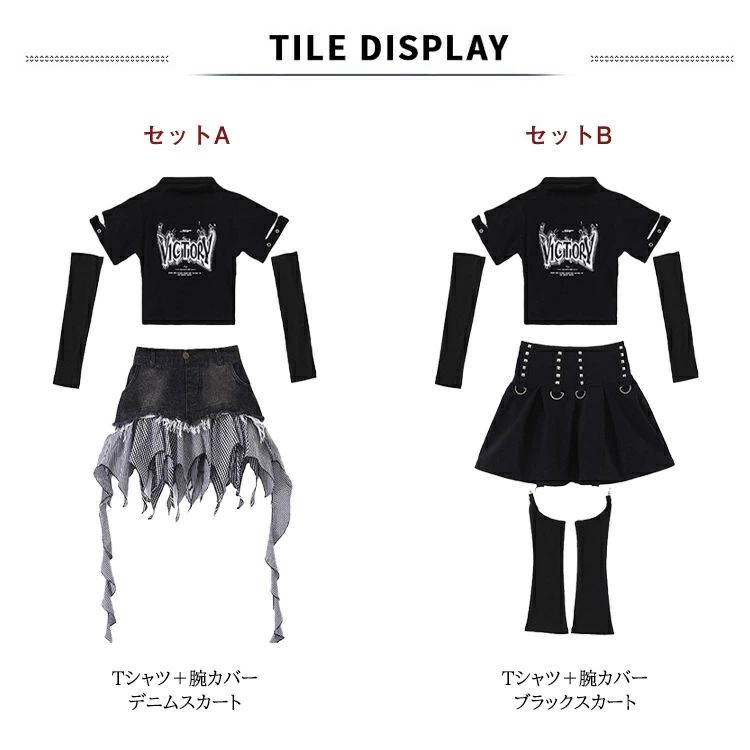 商品内容: セットA セットB Tシャツ+腕カバー デニムスカート ブラックスカート